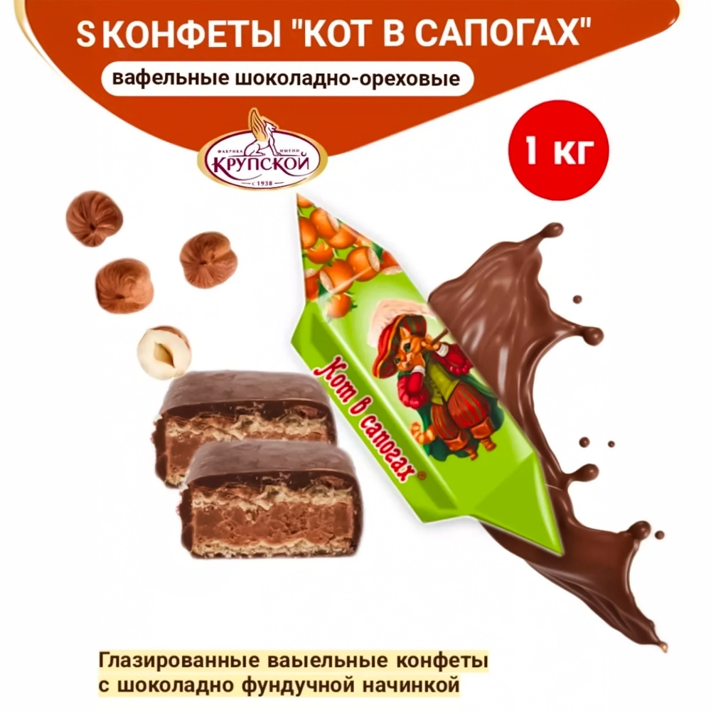 Конфеты вафельные - Кот в сапогах, Крупская, 300 г