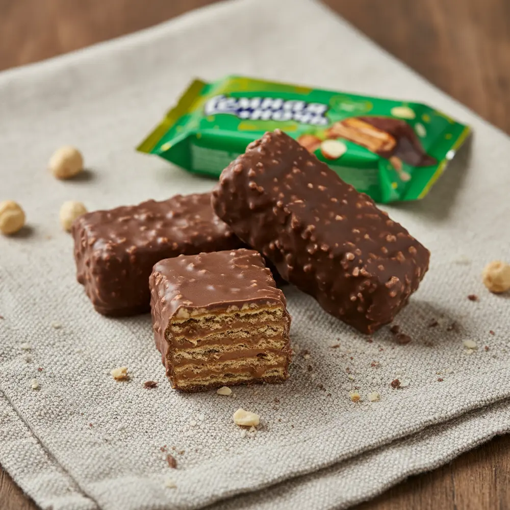 Ароматизатор, Сахар, Пшеничная мука, Кукурузный крахмал, Обезжиренный порошок какао, Рис, Соль, Измельченный арахис, Сывороточный продукт, E322, Глицерин, E471, Обезжиренное сухое молоко, фундучная паста 3%, Чёрная тростниковая меласса, Пальмоядровый жир