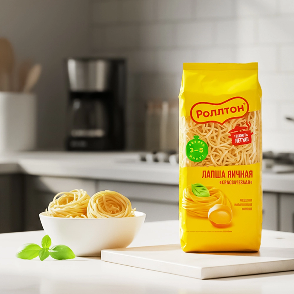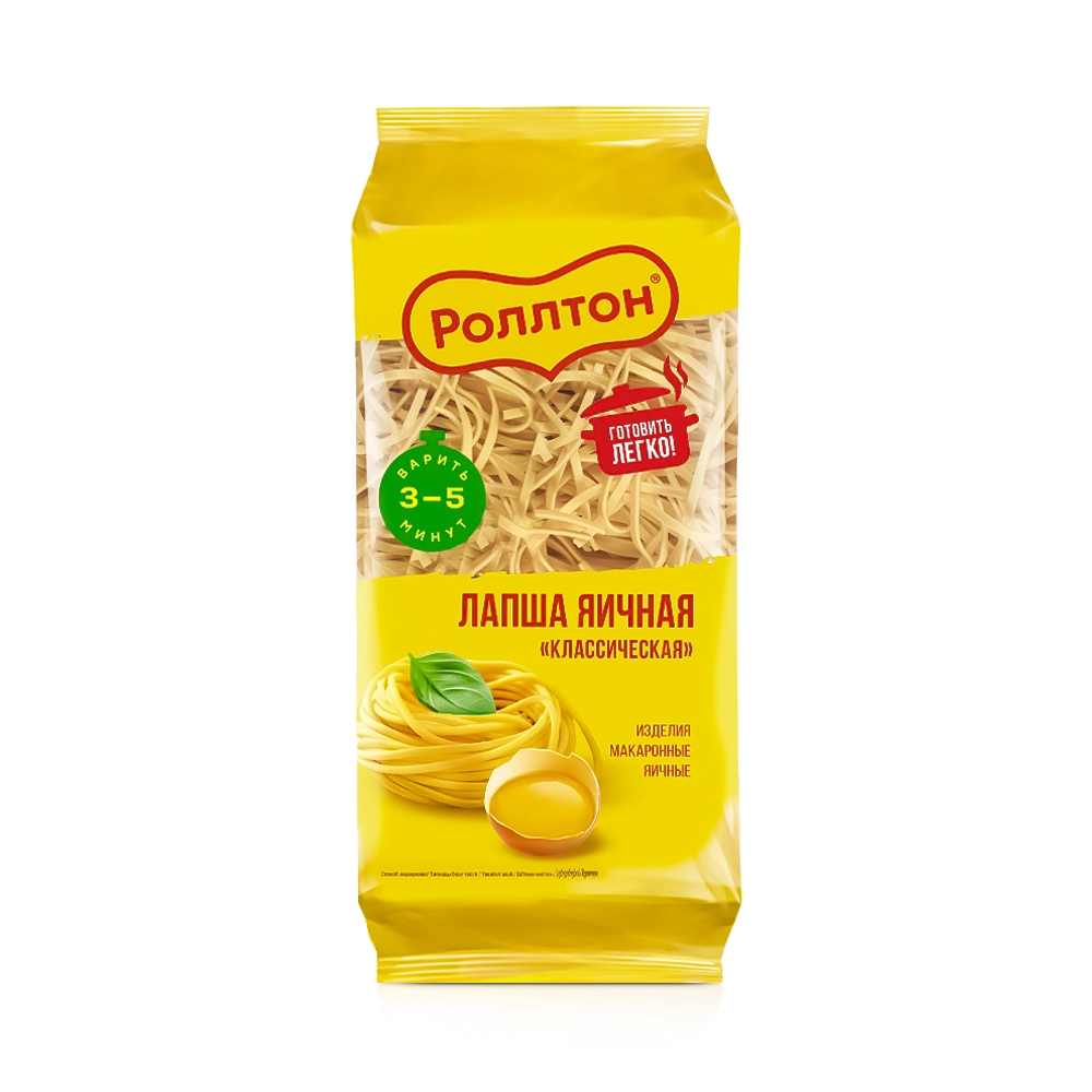 Когда хочется вкусно поесть и не возиться долго с готовкой, лапша яичная «Роллтон» Классическая – идеальный вариант! Она готовится всего 3-5 минут и отлично подходит для разных блюд: ее можно отварить как гарнир, заправив любимым соусом, или просто посыпать тертым сыром. А если бросить лапшу в куриный бульон – он станет сытным и аппетитным супом. Импровизируйте легко!