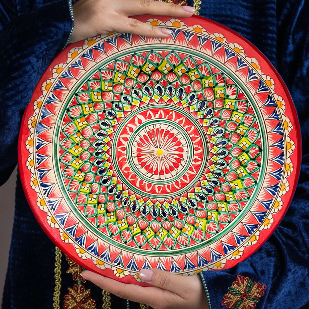 Ляган Мехроб красный, Риштан керамика, ручная работа, узор МИКС Ø 42 см