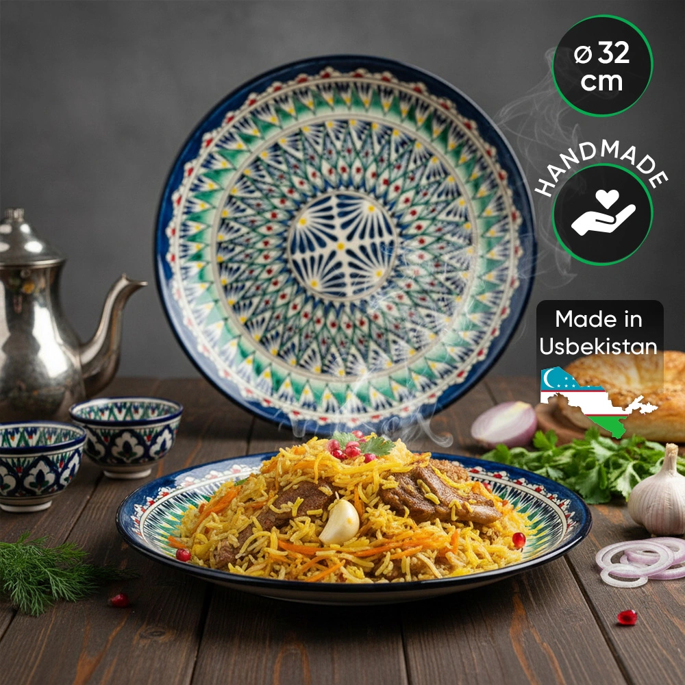 Посуда с национальной росписью станет отменным подарком для ценителей высокородной посуды. Риштан — город на востоке Узбекистана, славится своим гончарным искусством изготовления цветной керамики. Дополните коллекцию кухонных аксессуаров пряными восточными нотами