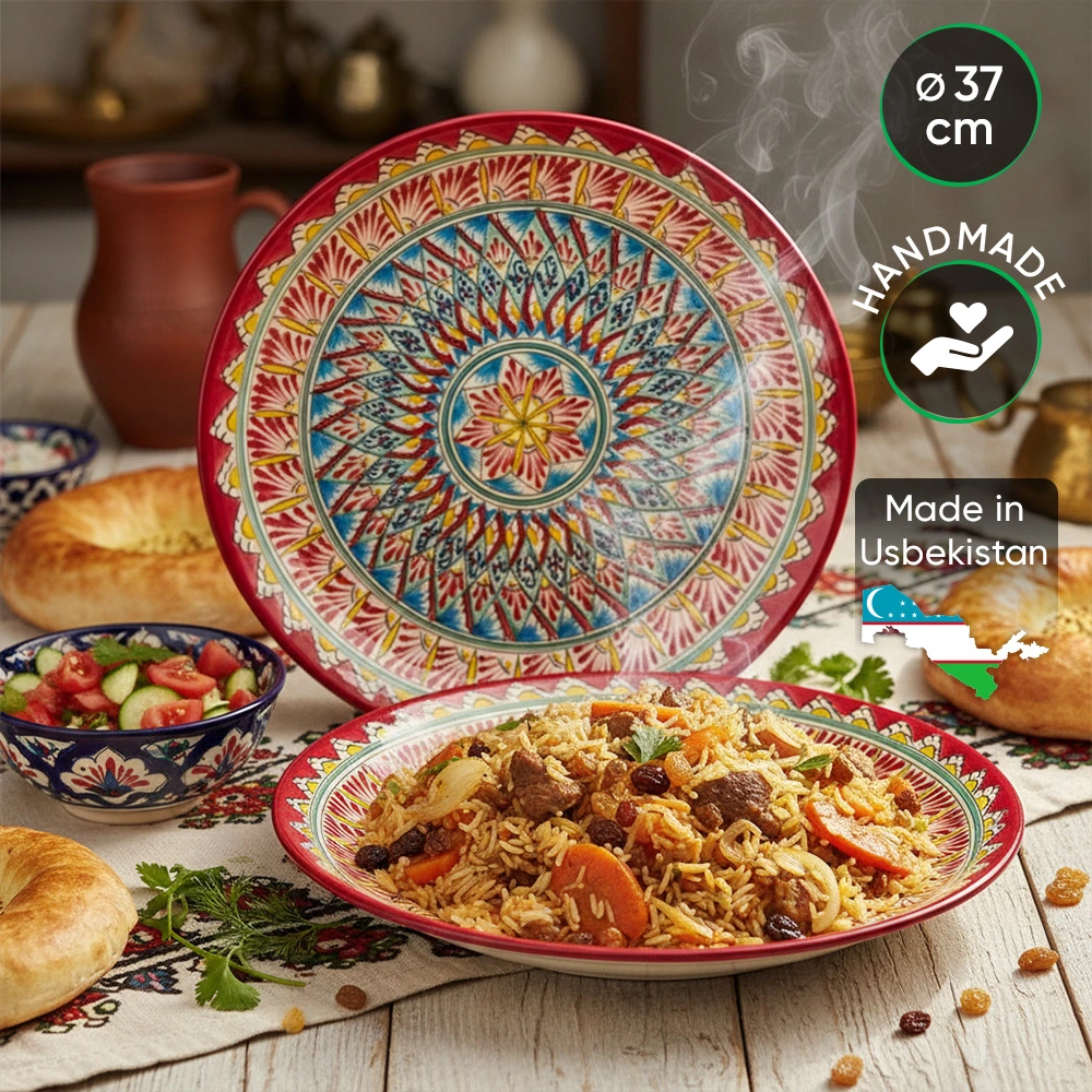 Посуда с национальной росписью станет отменным подарком для ценителей высокородной посуды. Риштан — город на востоке Узбекистана, славится своим гончарным искусством изготовления цветной керамики. Дополните коллекцию кухонных аксессуаров пряными восточными нотами