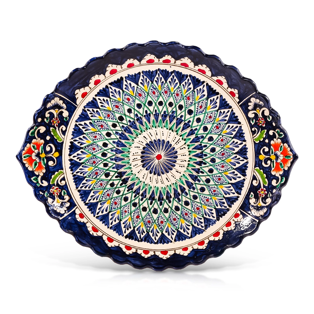Ляган резной овальный, Мехроб РО10, Риштан, 34 х 42 см