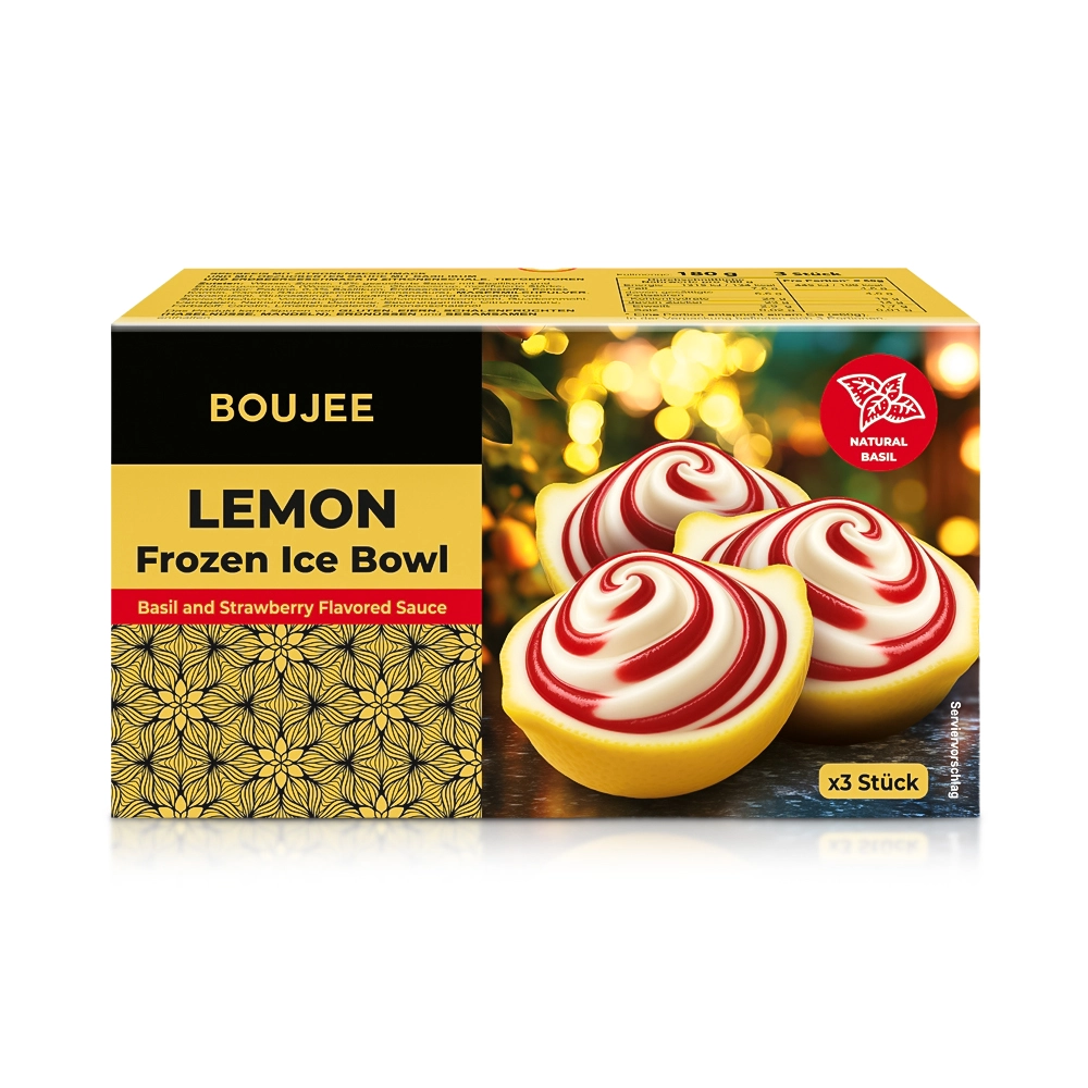 Boujee LEMON Frozen Ice Bowl включает 3 порции изысканного лимонного мороженого, замороженного непосредственно в натуральной лимонной кожуре. Сочетание освежающего лимонного аромата с насыщенным, слегка травянистым соусом из базилика и клубники создаёт по-настоящему уникальное вкусовое впечатление - свежее, фруктовое и утончённое одновременно. Десерт лёгкий, ароматный и идеально сбалансированный.