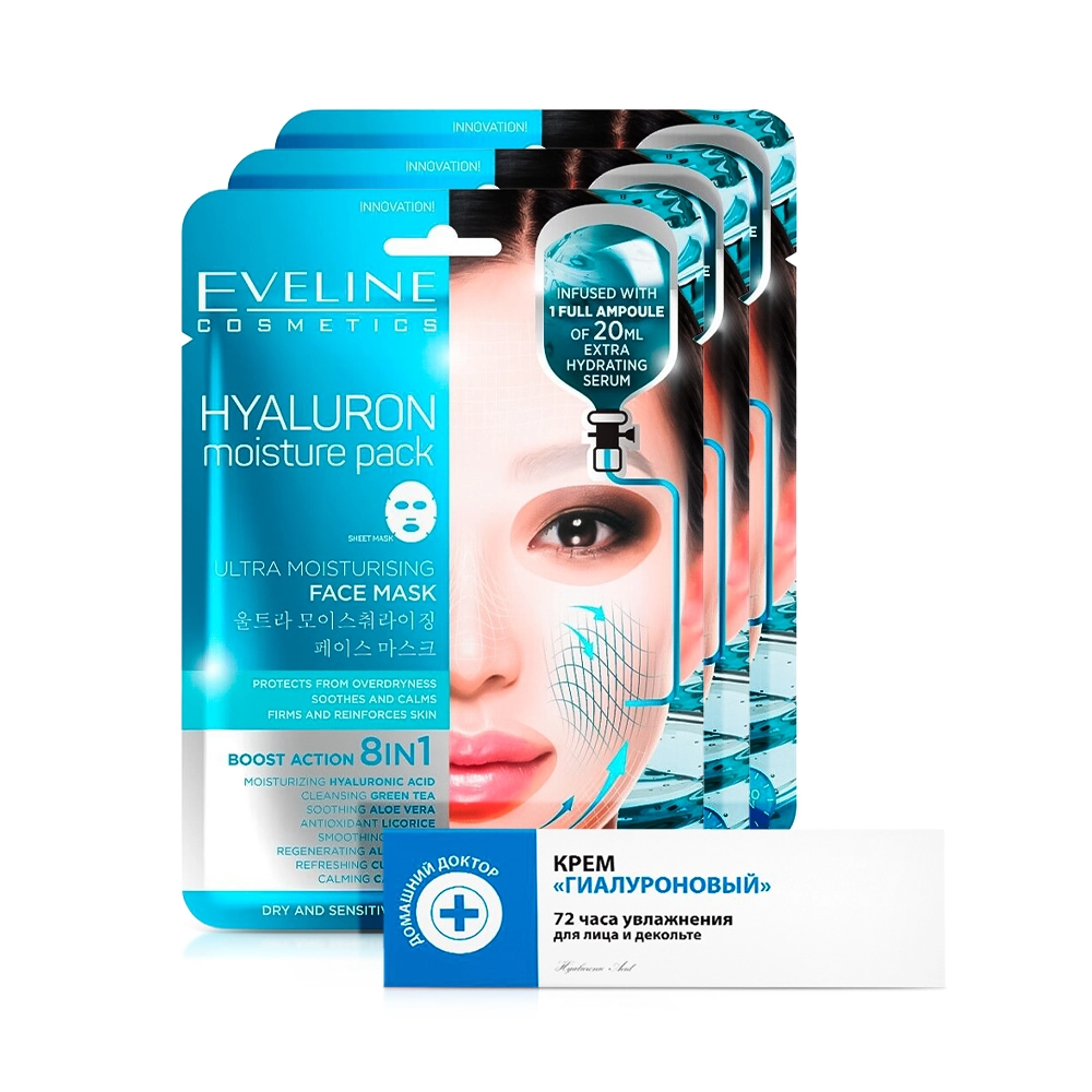 Набор для лица - Гиалуроновый, крем + маска: 3 шт.