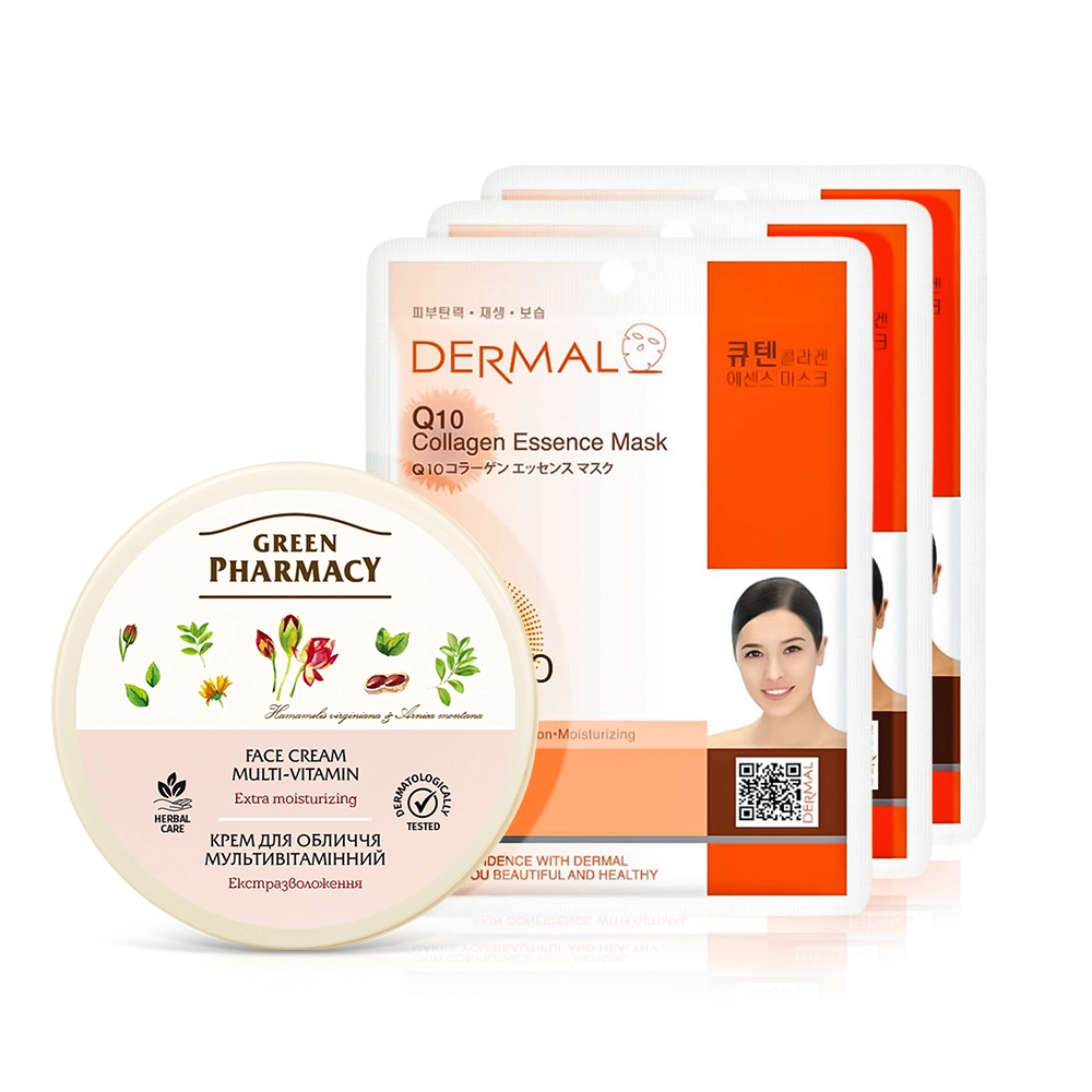 Набор для лица - Мультивитаминный, экстраувлажнение, крем + маска: 3 шт.
