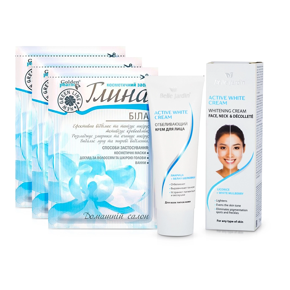 Набор для лица - Отбеливающий, крем + глина белая: 3 шт.