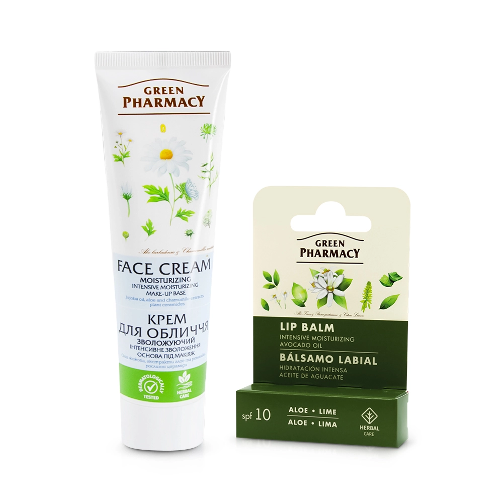 Набор для лица - Увлажняющий, крем + бальзам для губ