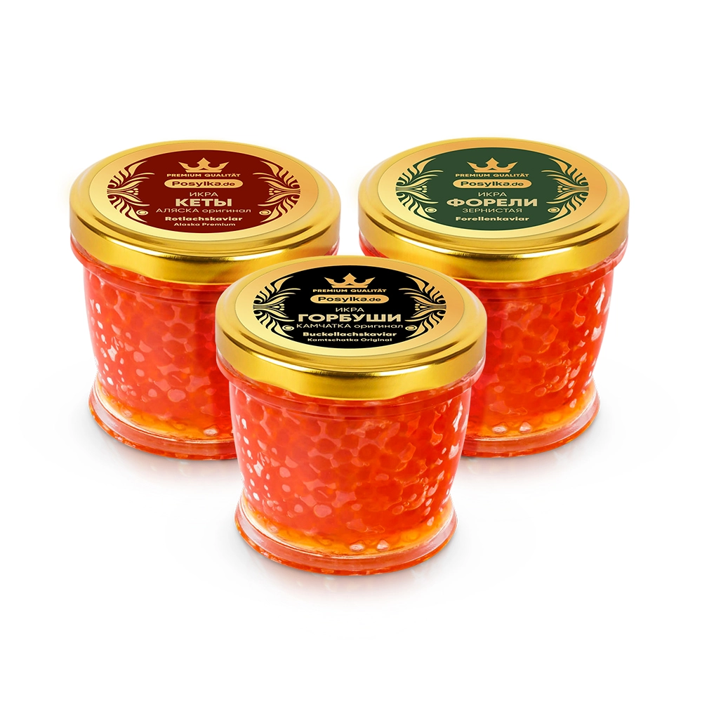 Набор красной икры, горбуша, кета, форель, 3 х 200 г