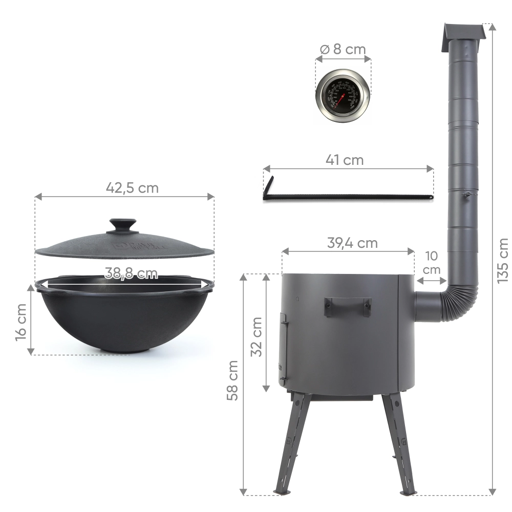 Кочерга 41 см, Крышка, Печь, Термометр, Казан 12 л, Ø 42,5 см