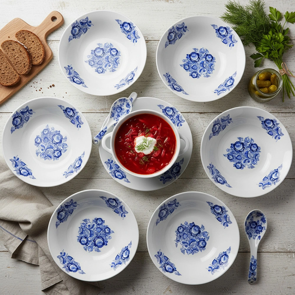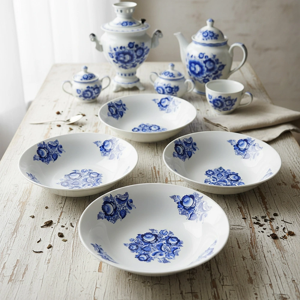 Набор суповых тарелок - Гжель, фарфор, Ø 18 см, 6 шт.