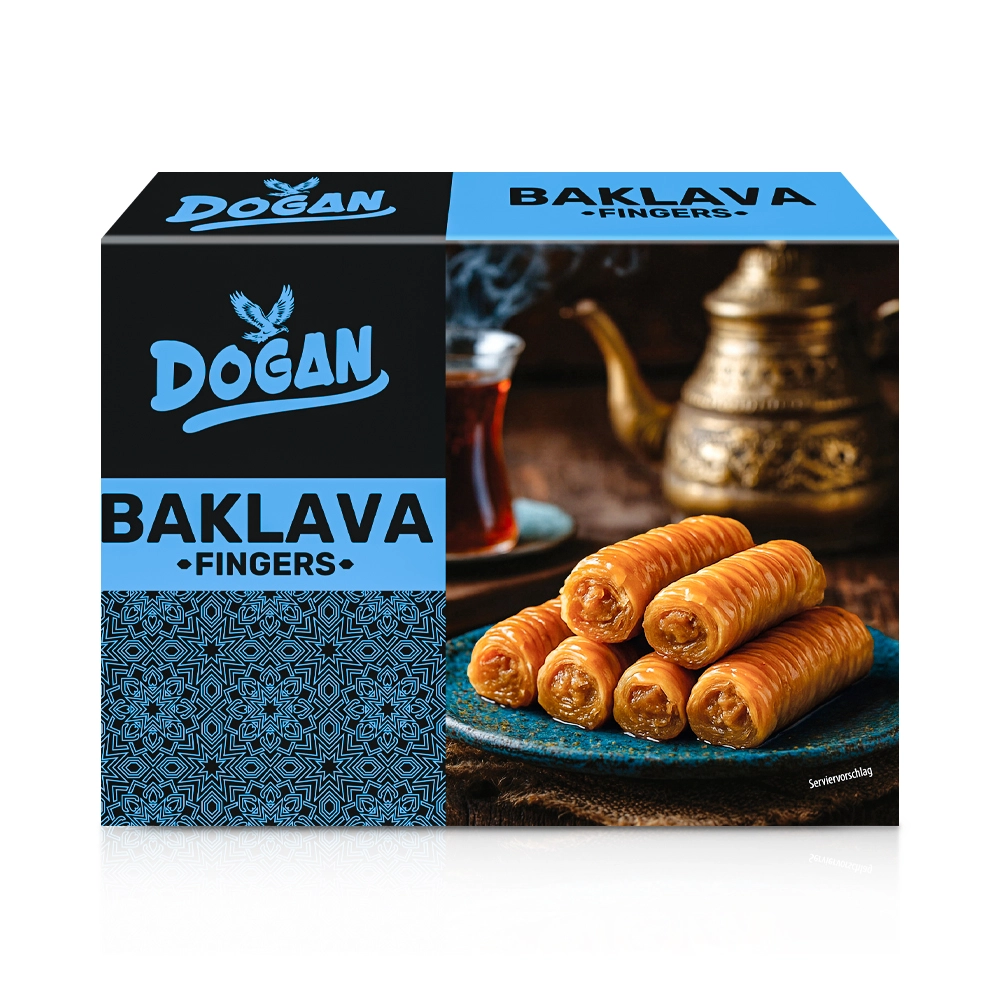 Dogan Баклава Фингерс – это вкусная вариация знаменитой восточной сладости баклавы. Слоёное тесто фило аккуратно скручено в рулетики, наполнено ореховой начинкой и запечено до золотистой корочки. Лёгкий сахарный сироп придаёт сладость и сочность, а тонкое тесто остаётся хрустящим.