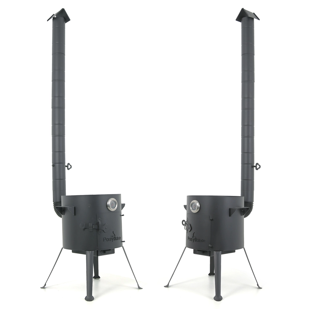 Изделие представляет собой металлический цилиндр-корпус, в комплект которого входят съёмные ножки, дверце, кочерга и колосник. За счёт оптимальной толщины стенок (2 мм) исключена возможность деформации стенок изделия.