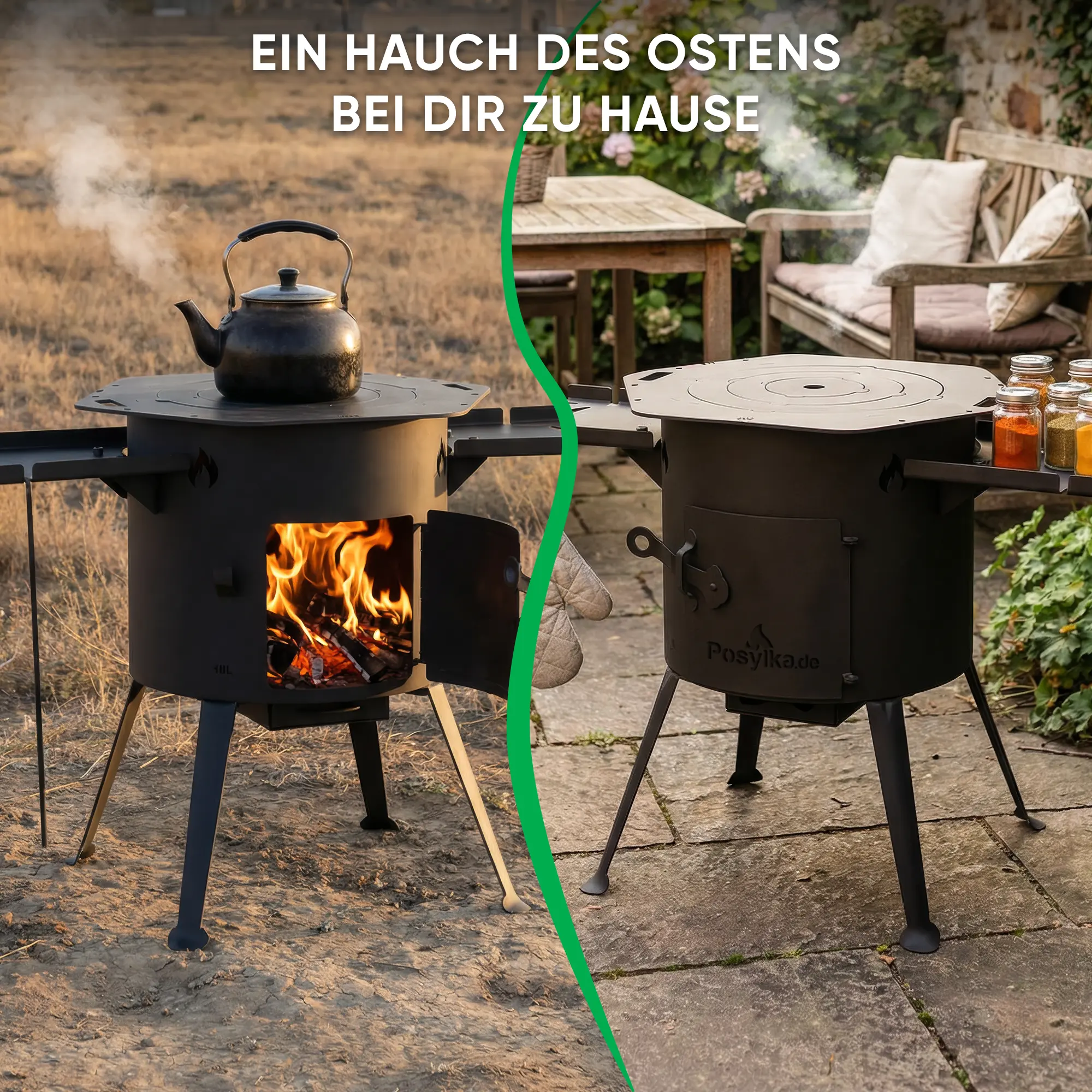 Печь учаг Ø 36 см, для казана 10 л, столики, плита