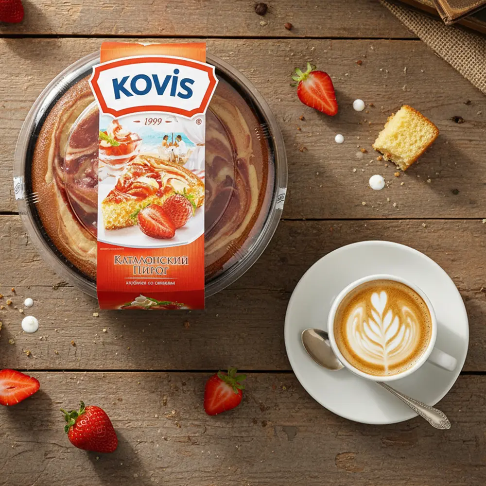 Пирог понравился: бисквит мягкий, не сухой, начинка клубнично-сливочная, вкус как у домашней выпечки, сладкий, но без приторности. Состав для магазинного десерта вполне адекватный, хранится нормально, беру уже второй раз