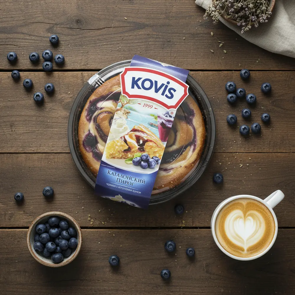 Пирог бисквитный, с йогуртовой и черничной начинками, 400 г