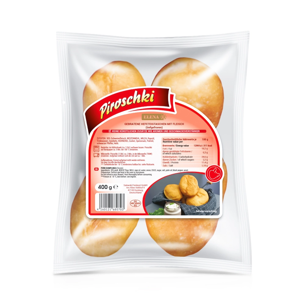 Пшеничная мука, Молоко, Сахар, Свинина 30 %, Вода, Дрожжи, Подсолнечное масло, Лук, Соль, Перец, Сало, Куриное яйцо