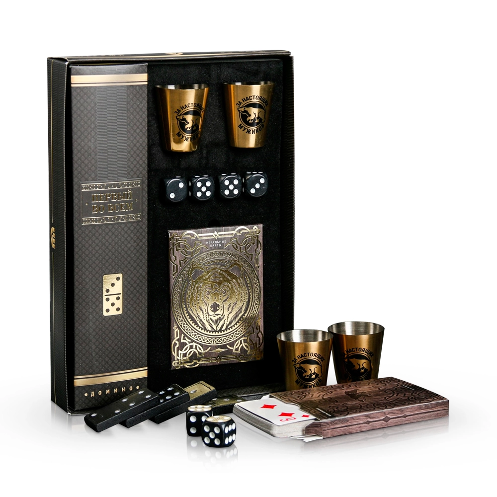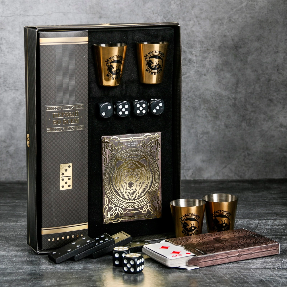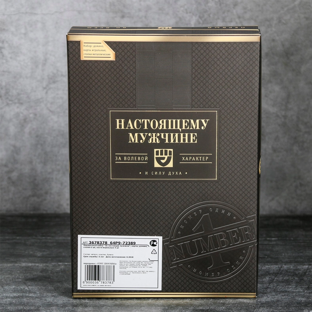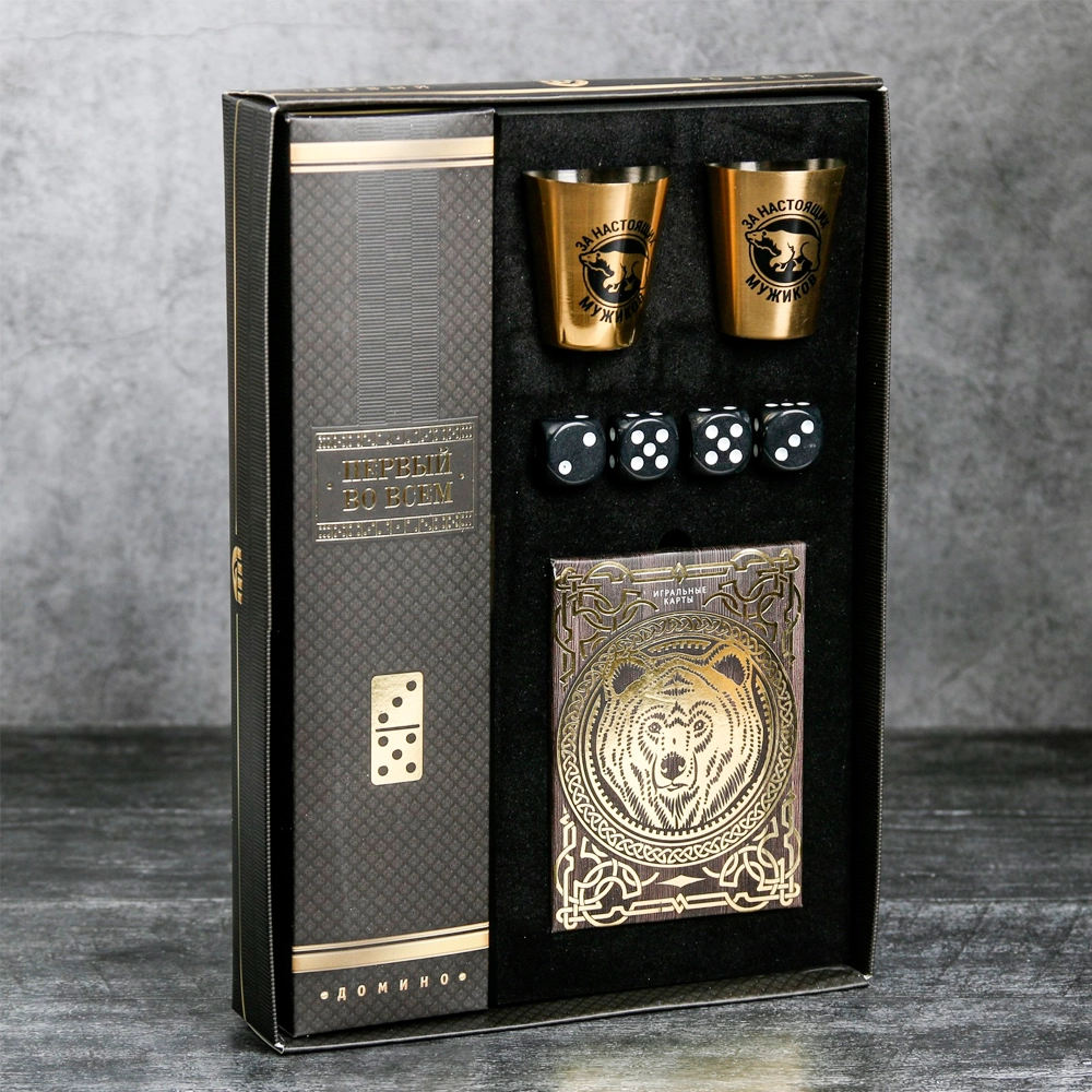 Подарочный набор - За настоящих мужиков, карты, домино, стопки, кости игральные, 22 х 15 х 3,5 см