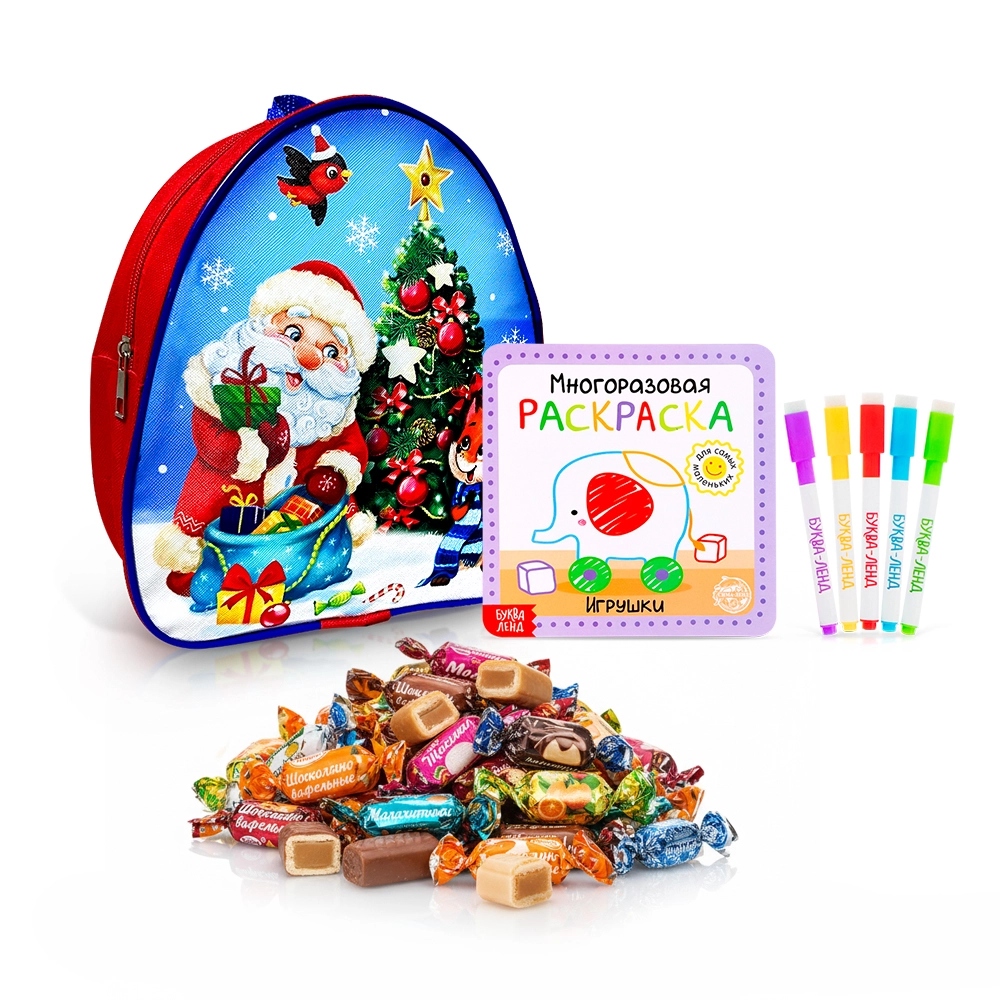 Подарочный рюкзак с конфетами и раскраской - Дед Мороз, 20 х 23 см