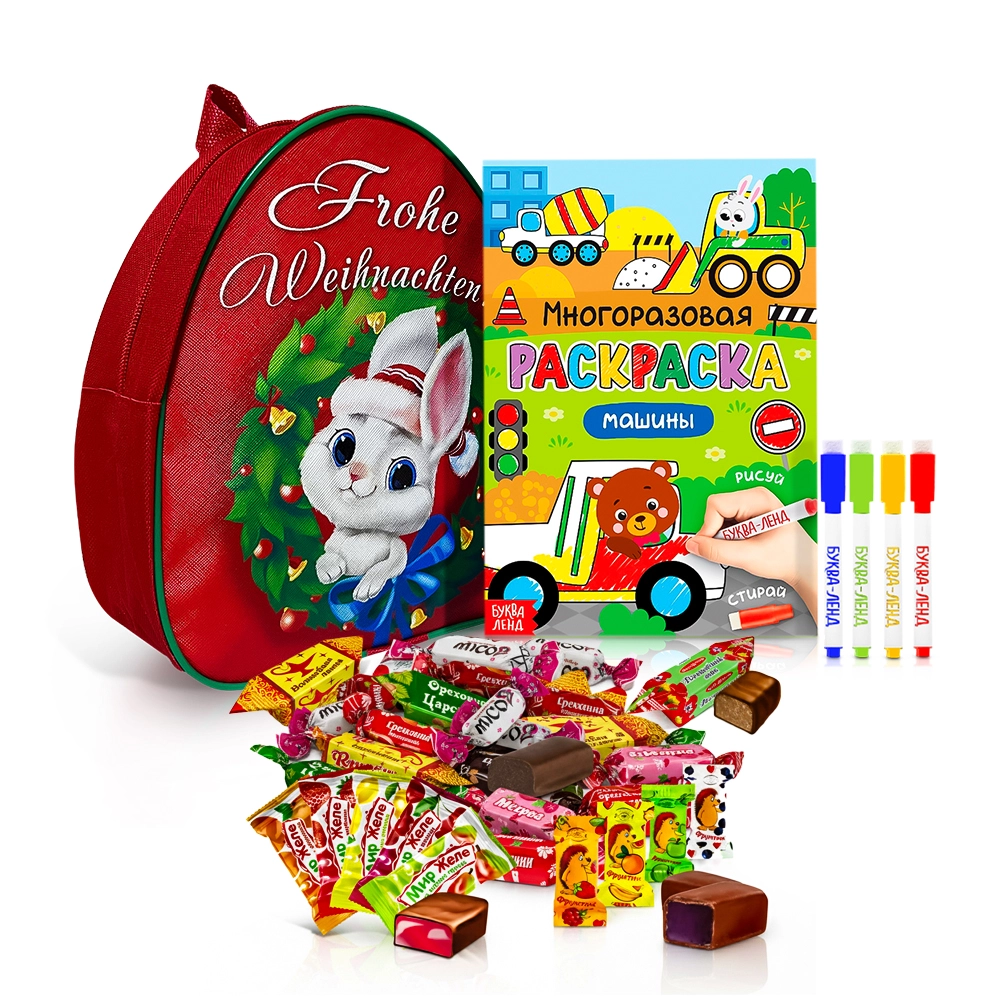 Подарочный рюкзак с конфетами и раскраской - Зайкины вкусняшки, 20 х 23 см
