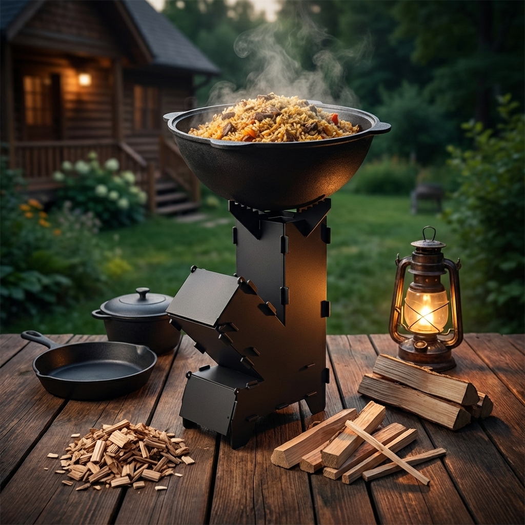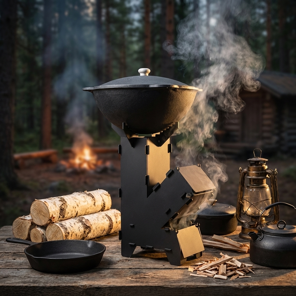 Ракетная печь щепочница, разборная, металл 2 мм, высота 50 см