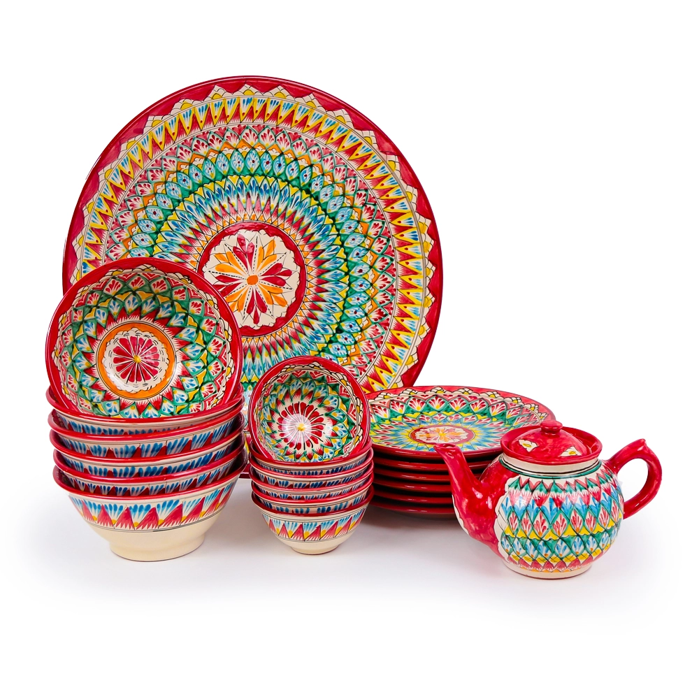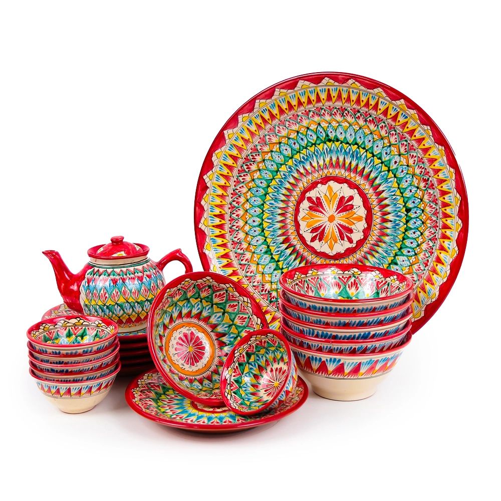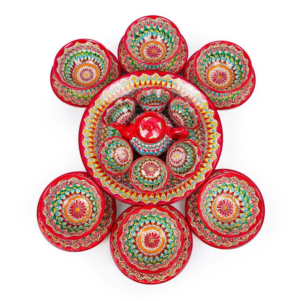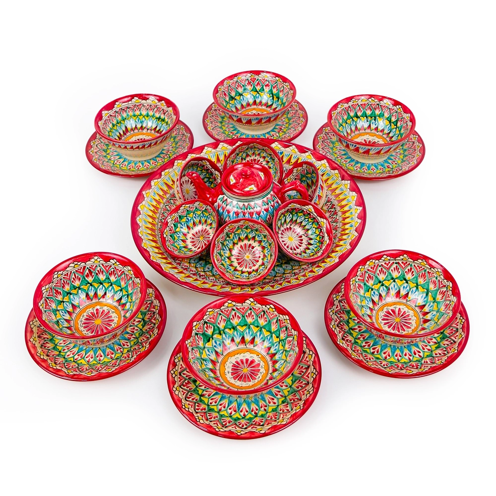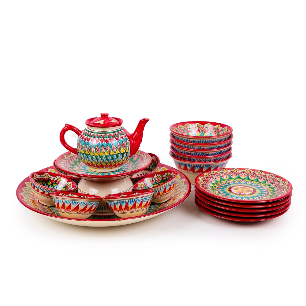 Сервиз чайный макси - Мехроб красный - MSV2 - RA - Риштанская керамика - 21 предмет