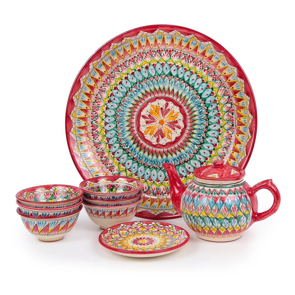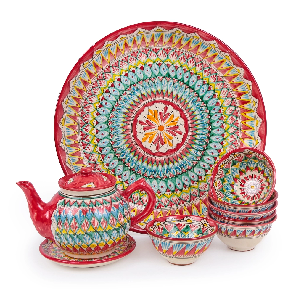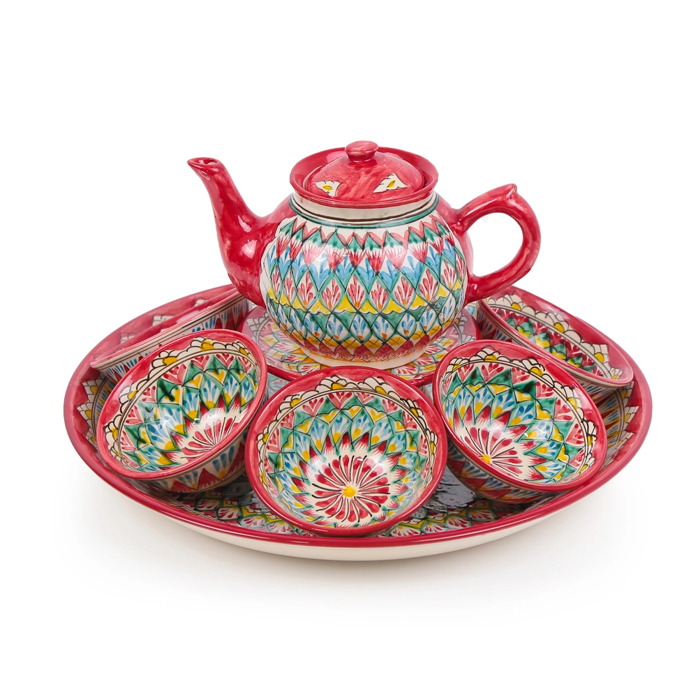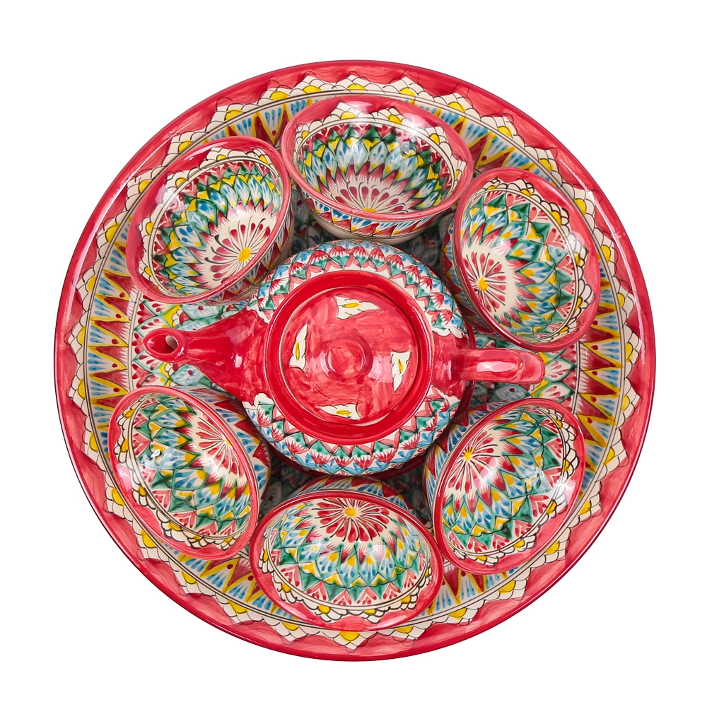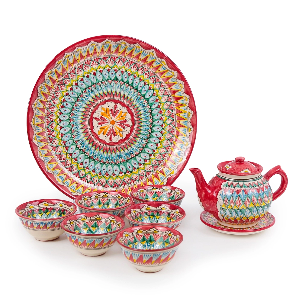 Сервиз чайный - Мехроб красный - MSV2 - RA - Риштанская керамика - 9 предметов