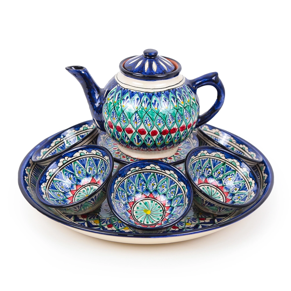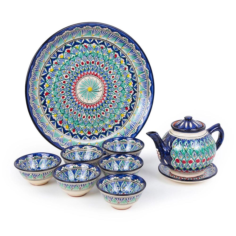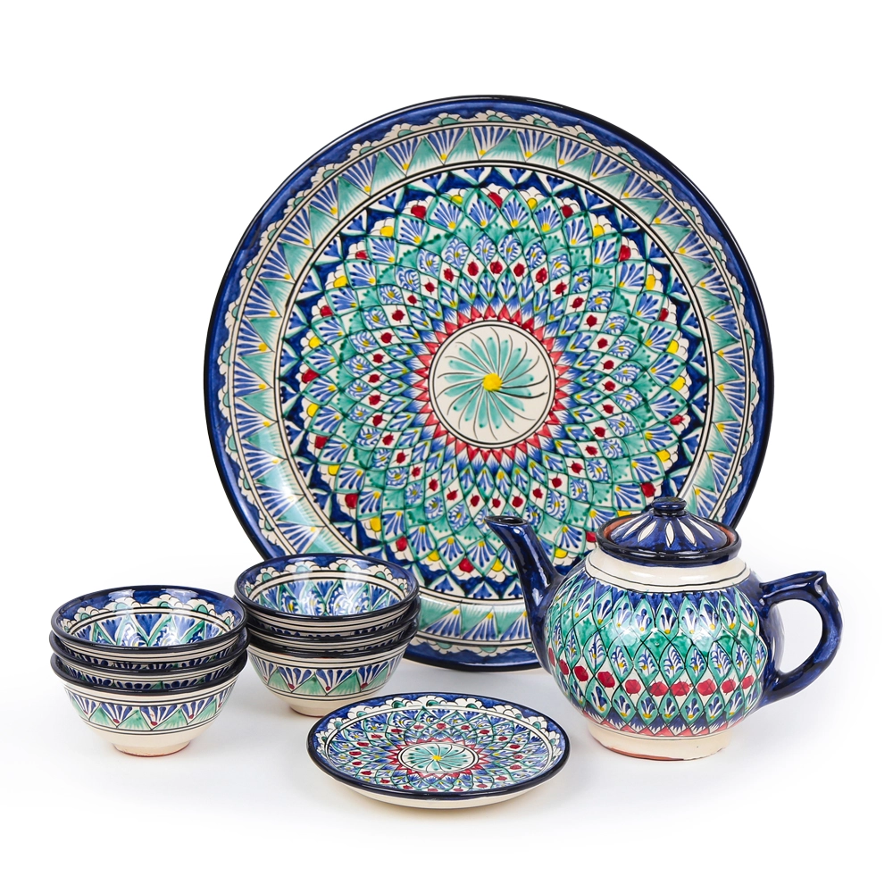 Ляган Ø 37 см: 1 шт., Чайник заварочный 700 мл: 1 шт., Тарелка Ø 15 см: 1 шт., Пиала Ø 11 см: 6 шт.