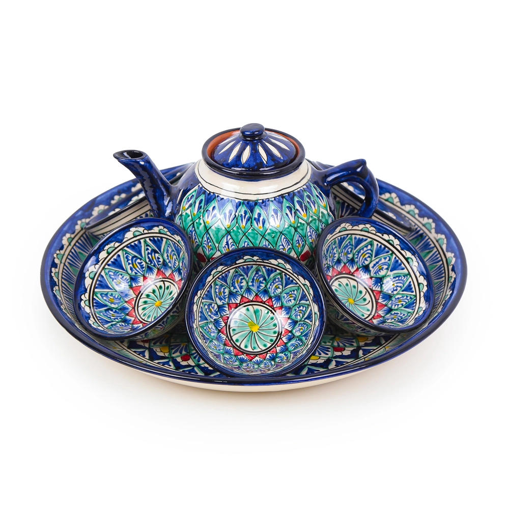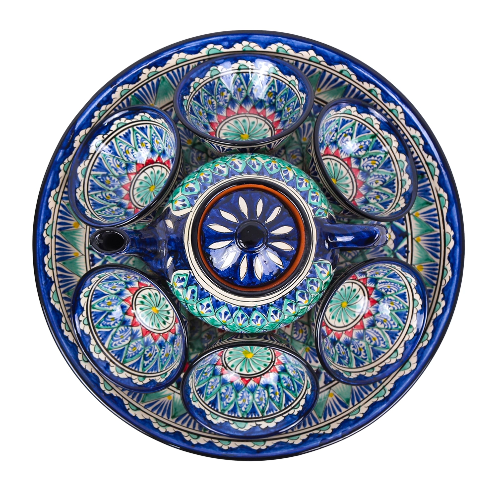 Сервиз чайный - Мехроб синий - MSV1 - BЖ - Риштанская керамика - 9 предметов