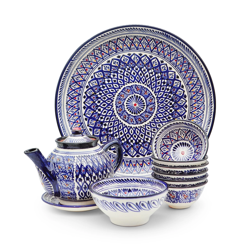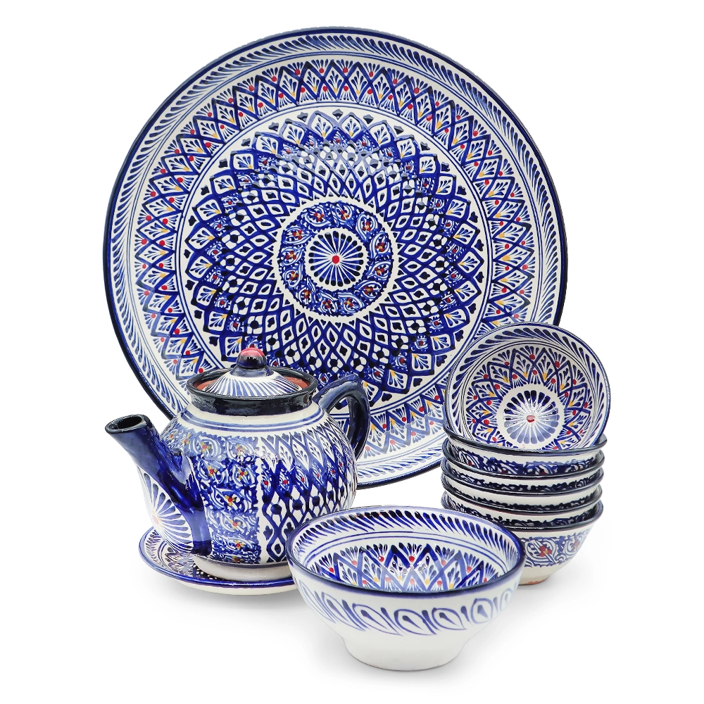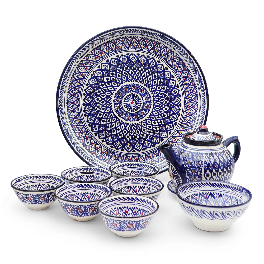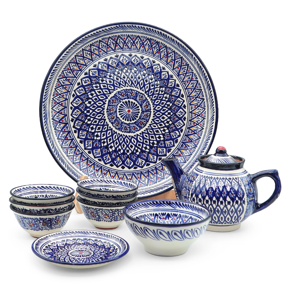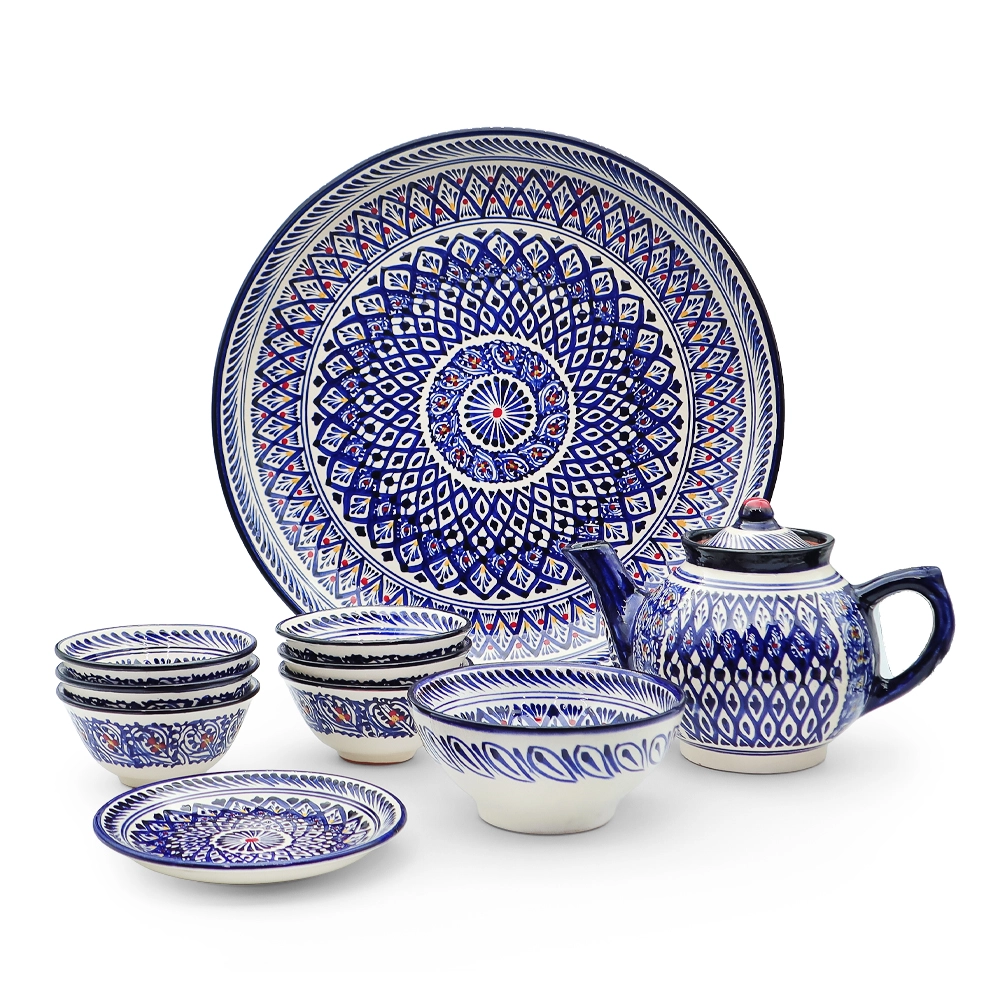 Сервиз чайный - Мехроб синий - MSV5 - Риштанская керамика - 10 предметов