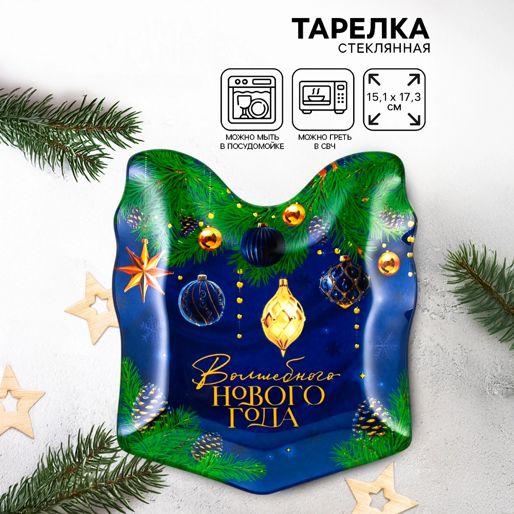 Тарелка новогодняя - Волшебного Нового Года!, стекло, 15,1 х 17,3 см