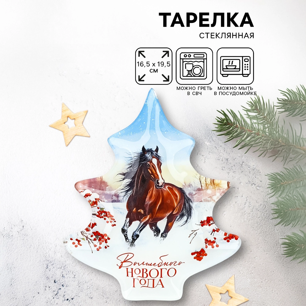 Тарелка новогодняя - Волшебного Нового Года!, стекло, 19,5 х 16,5 см