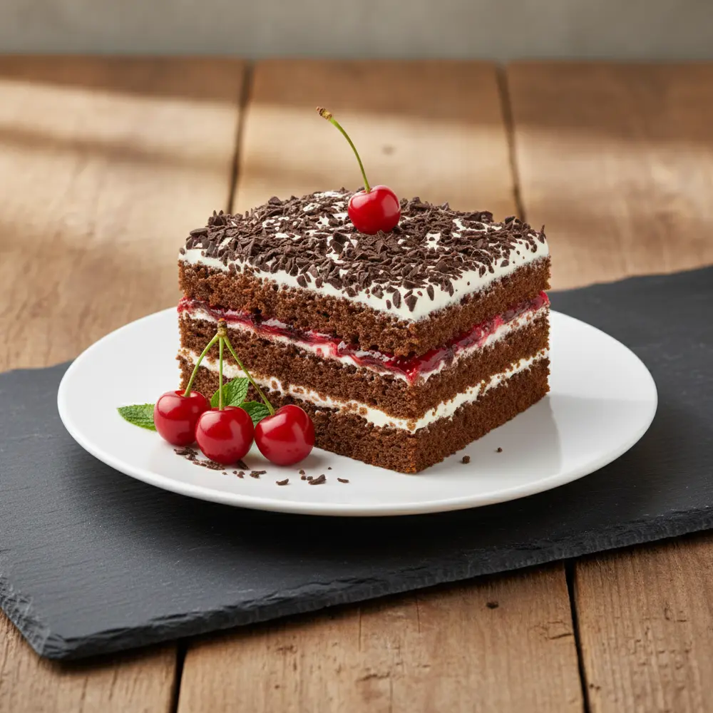 Вода, Сахар, Вишня, Обезжиренный порошок какао, Кукурузный крахмал, Сироп глюкозы (содержит консервант E220), Эмульгатор соевый лецитин, Пшеничная мука, Глицерин, Молочная кислота, Яйца, Лимонная кислота, Разрыхлитель карбонат натрия, Заменитель молочного жира (растительные масла, частично отвержденные (пальмовое масло, подсолнечное масло, в разных пропорциях, сильные экстракты токоферолов), Ароматизатор (топленое молоко)), Соль, Ароматизатор, Ксантановая камедь