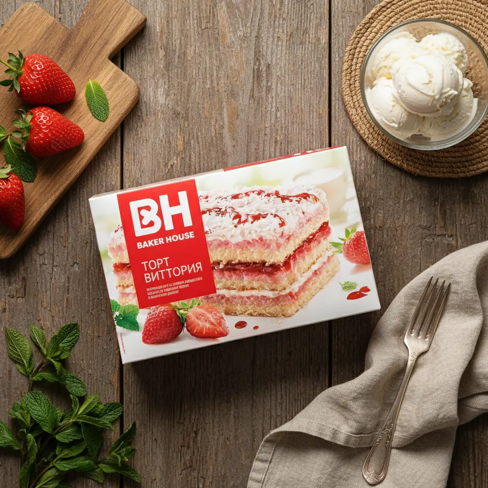 Торт бисквитный - Виттория, клубничный, Baker House, 350 г
