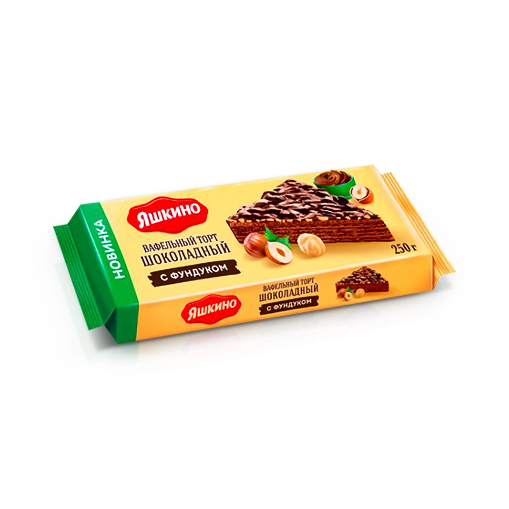 Торт вафельный шоколадный, глазированный с фундуком, Яшкино, 250 г