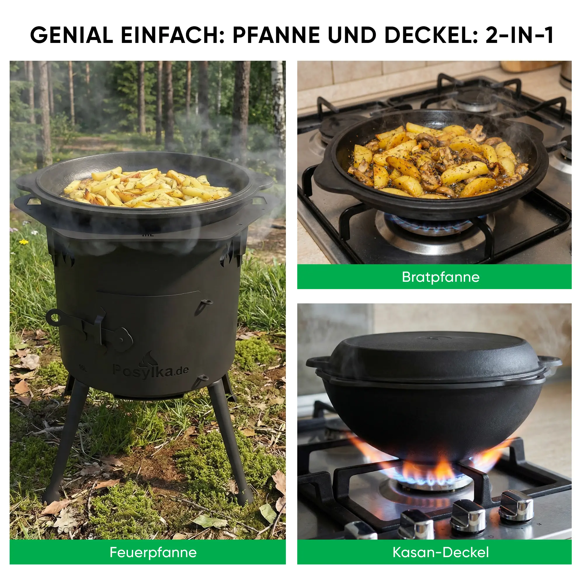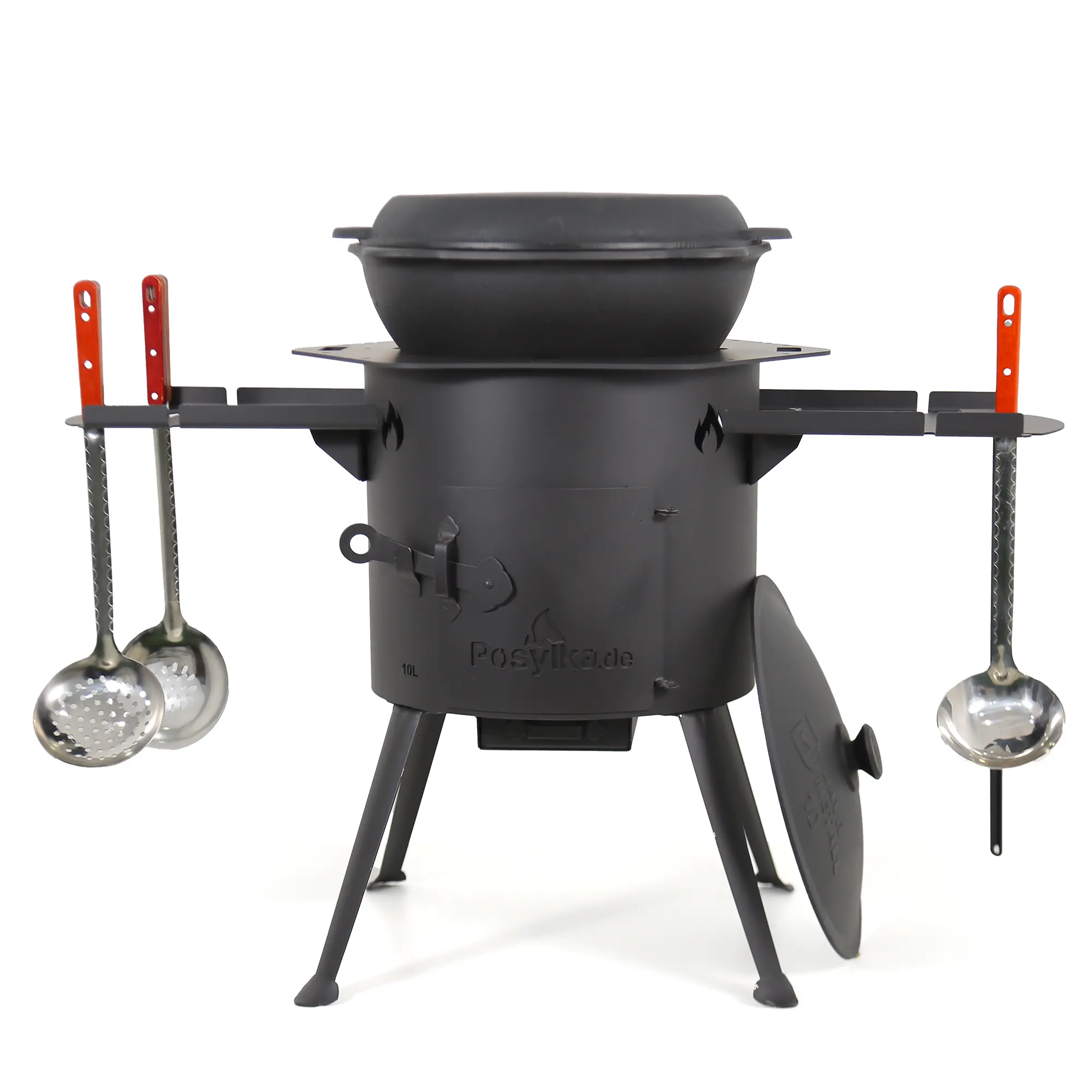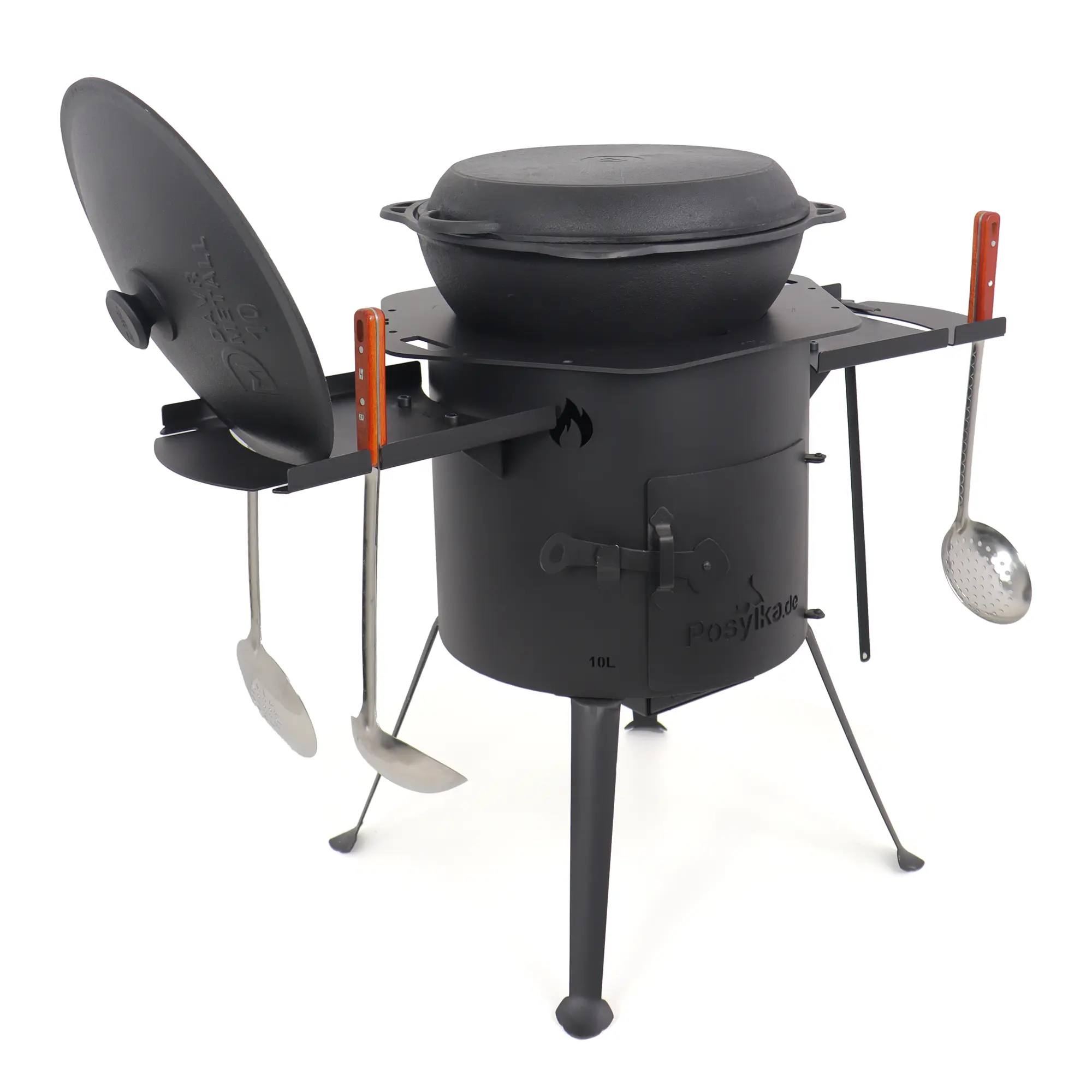 Учаг печь Ø 36 см + чугунный казан 10 л, плоское дно, столики, плита + кухонные принадлежности, узбекский чугунный казан для гриля и плова
