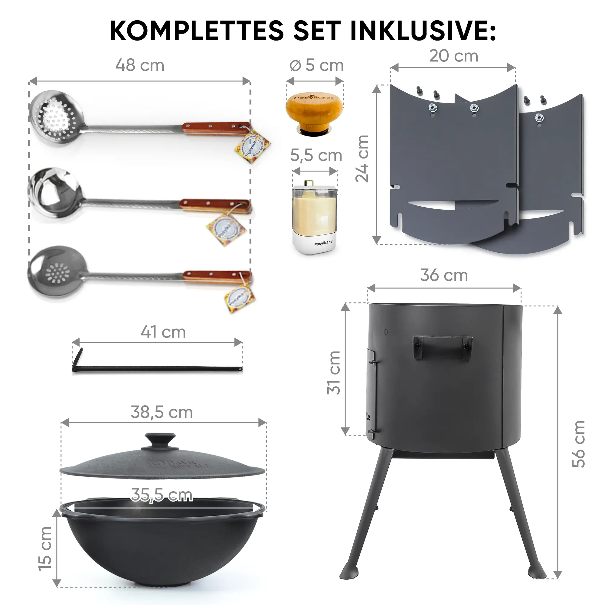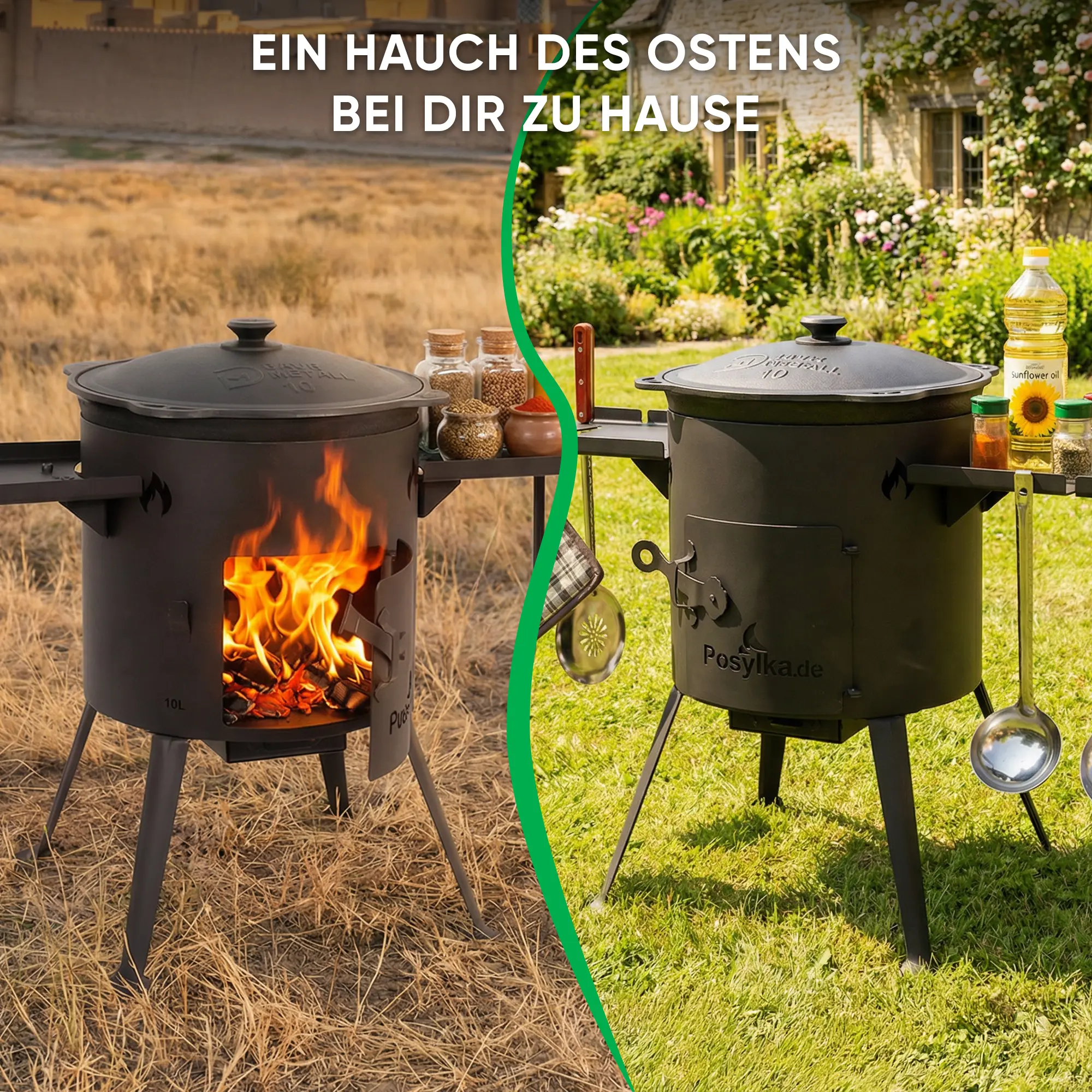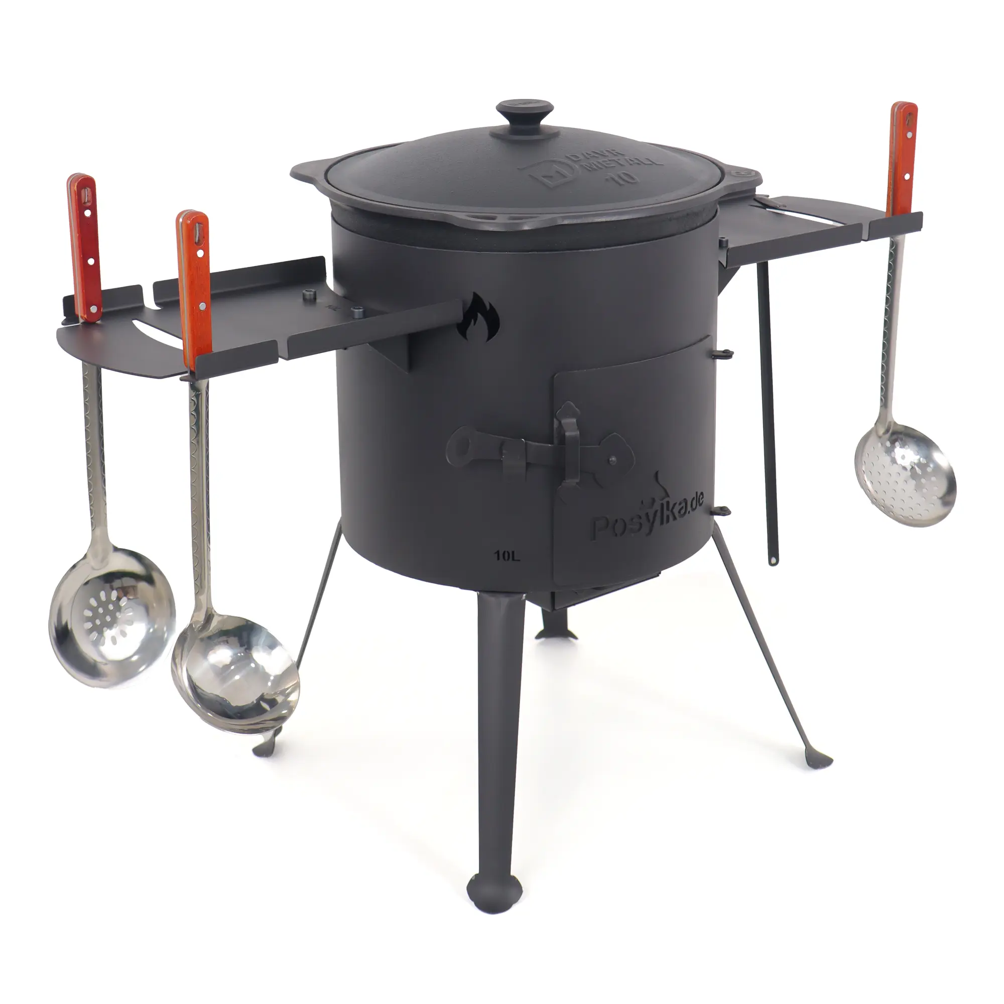 Учаг печь Ø 36 см + чугунный казан 10 л, плоское дно, столики + кухонные принадлежности, узбекский чугунный казан для гриля и плова