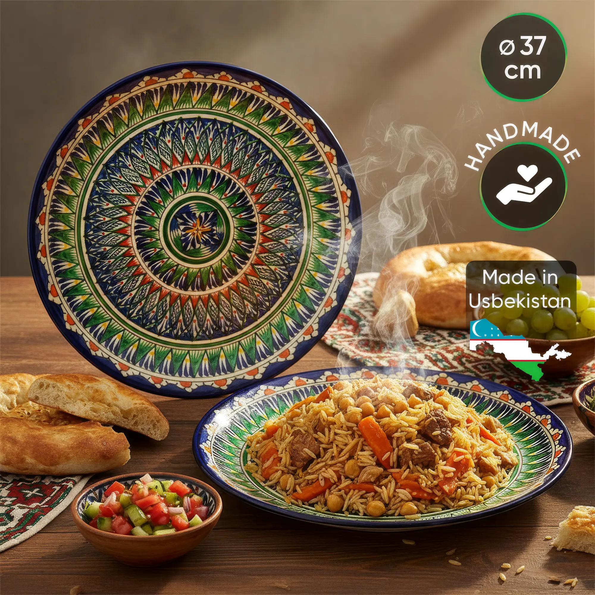 Ляган - Риштан, керамика, ручная работа, узор МИКС, Ø 37 см