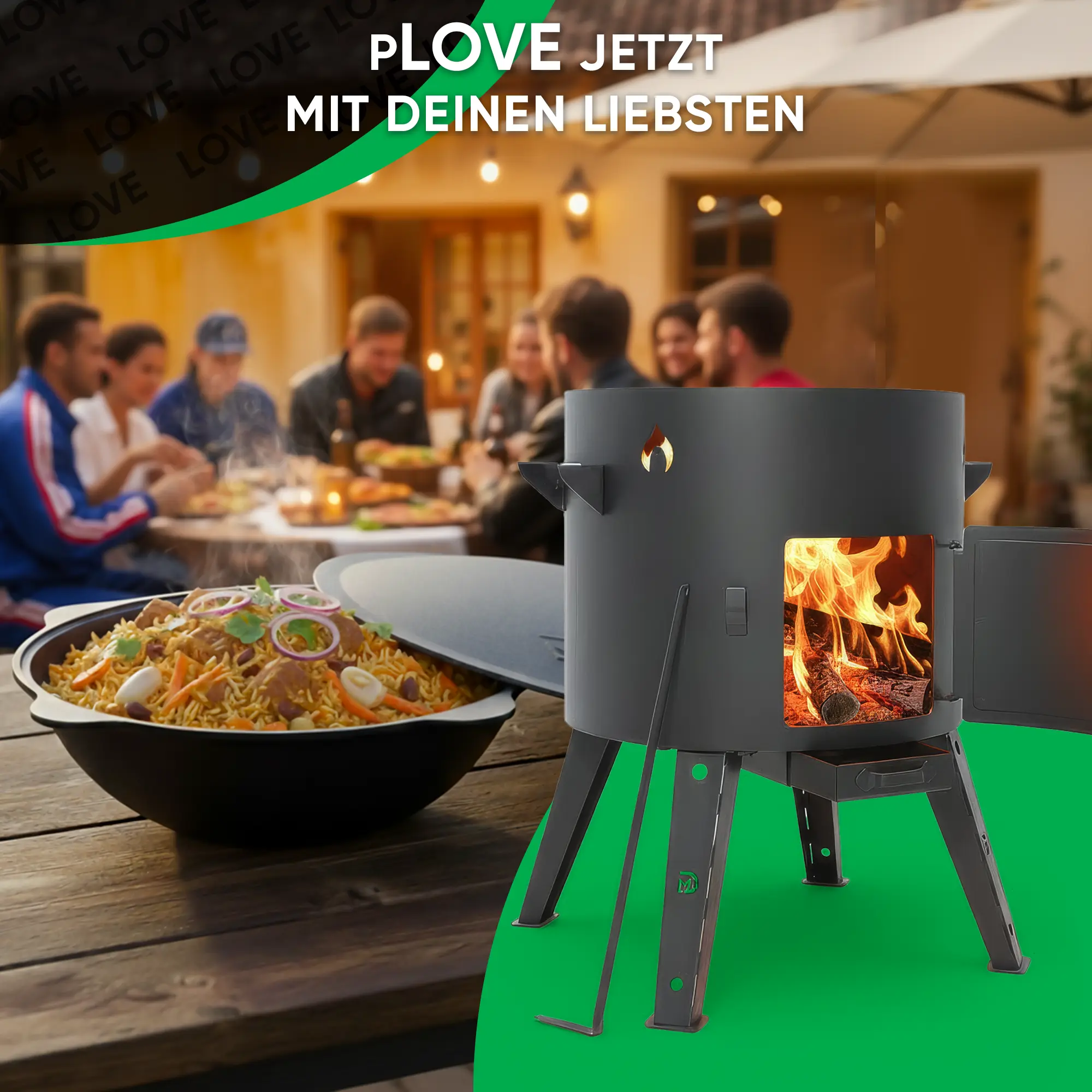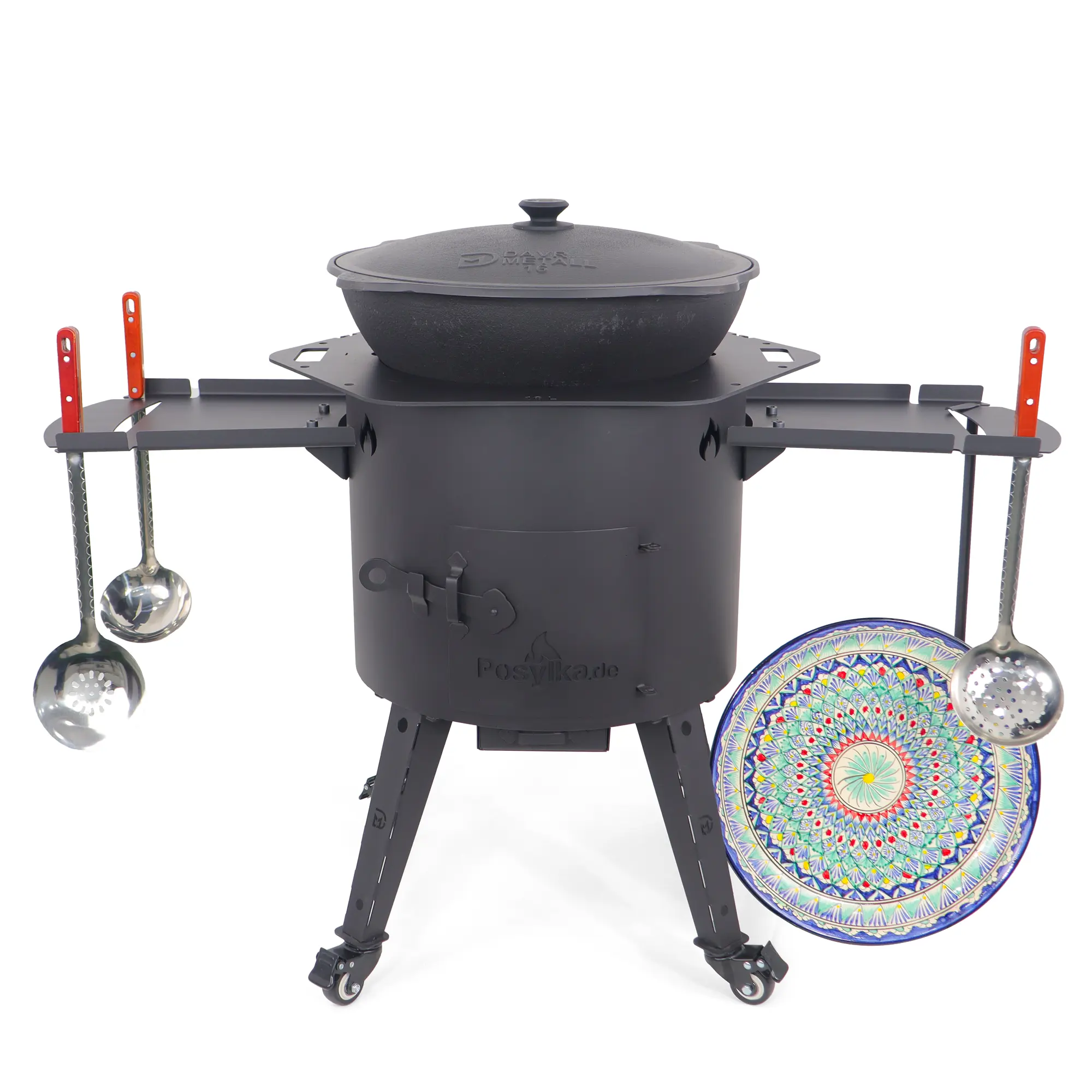 Учаг печь Ø 44 см + чугунный казан 16 л, плоское дно, колёса, столики, плита + кухонные принадлежности, узбекский чугунный казан для гриля и плова