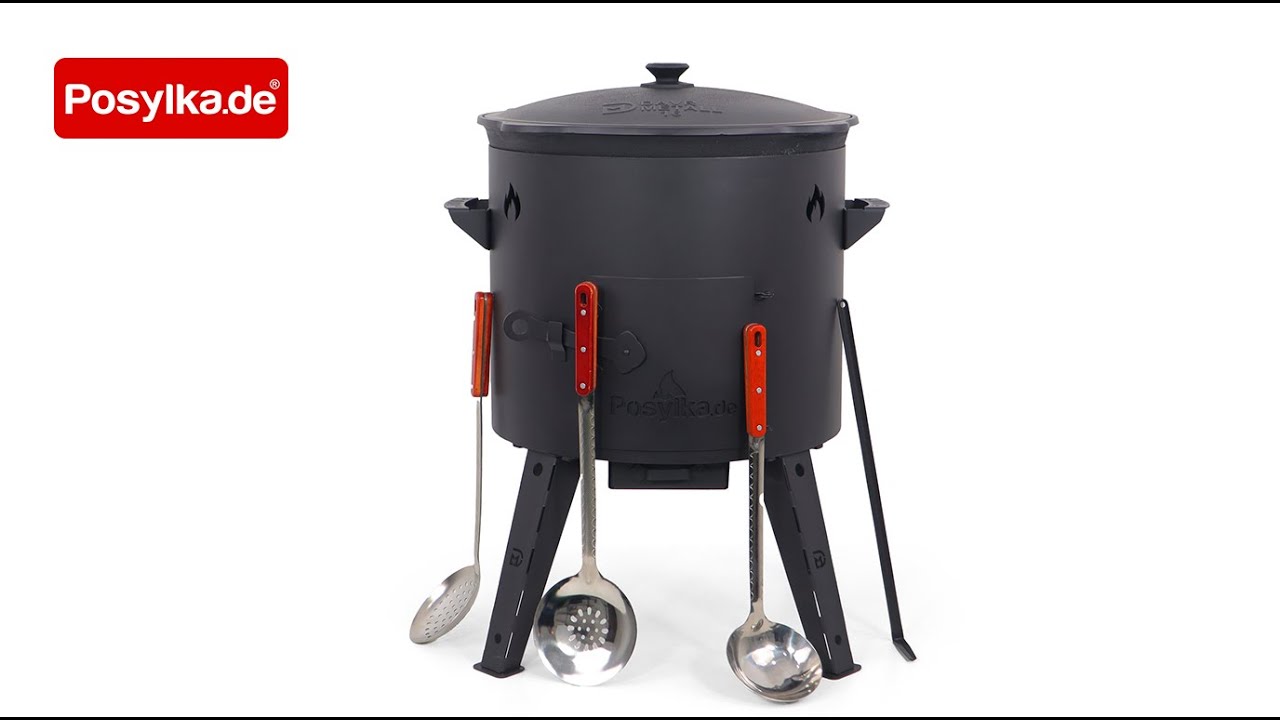 Учаг печь Ø 44 см + чугунный казан 16 л, плоское дно + кухонные принадлежности, узбекский чугунный казан для гриля и плова