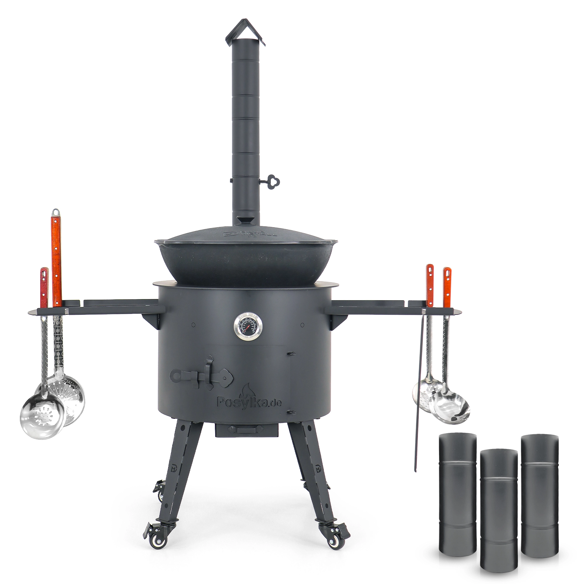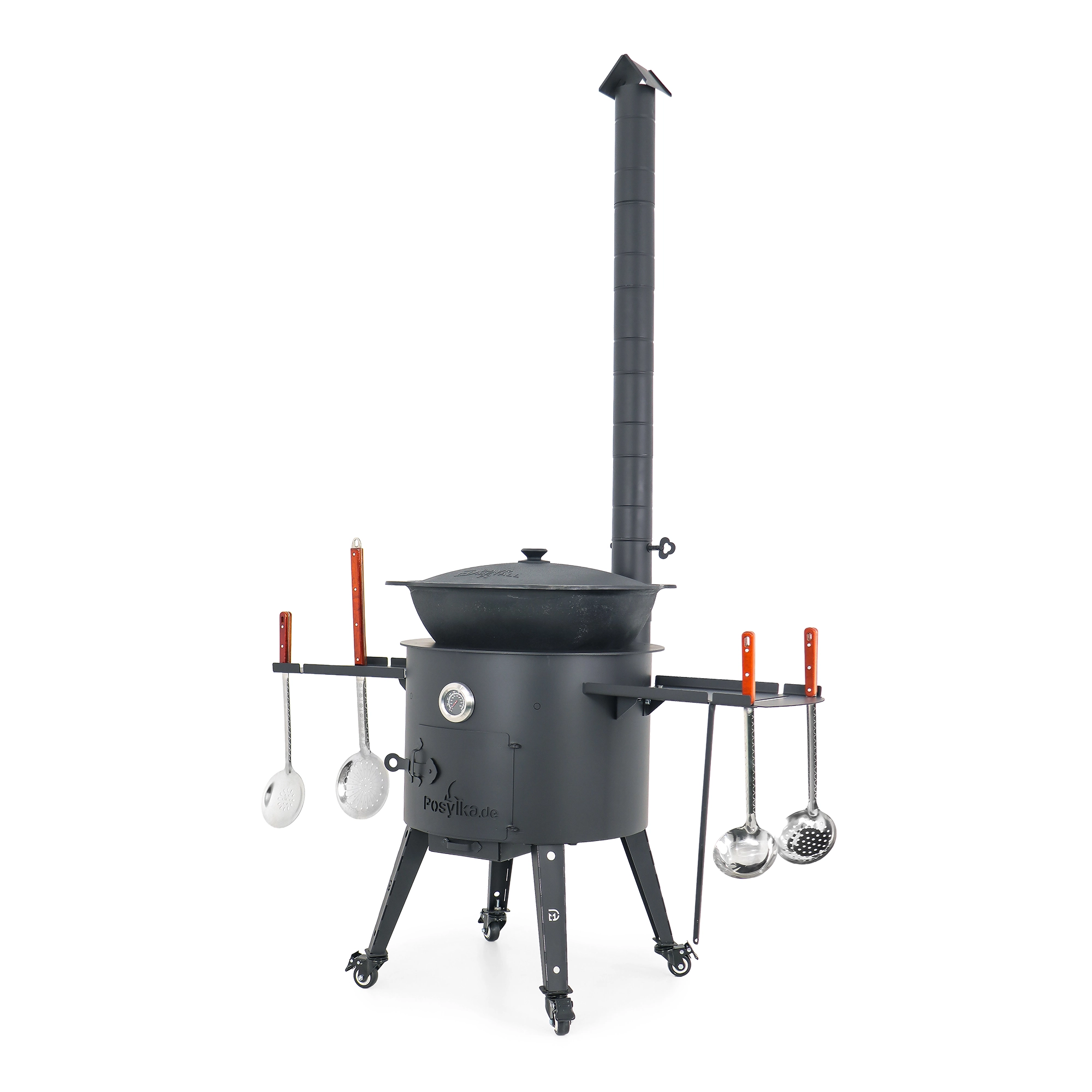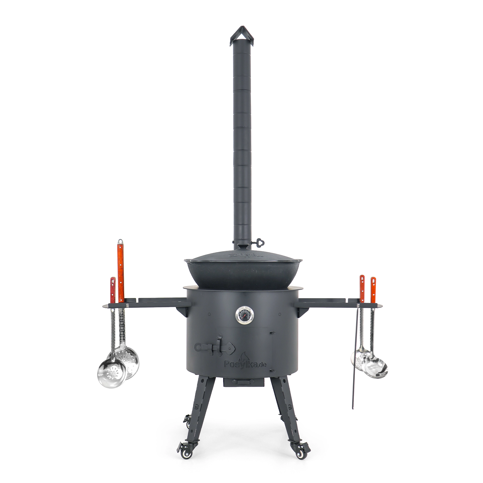 Учаг печь Ø 49 см + чугунный казан 22 л, плоское дно + кухонные принадлежности, узбекский чугунный казан для гриля и плова