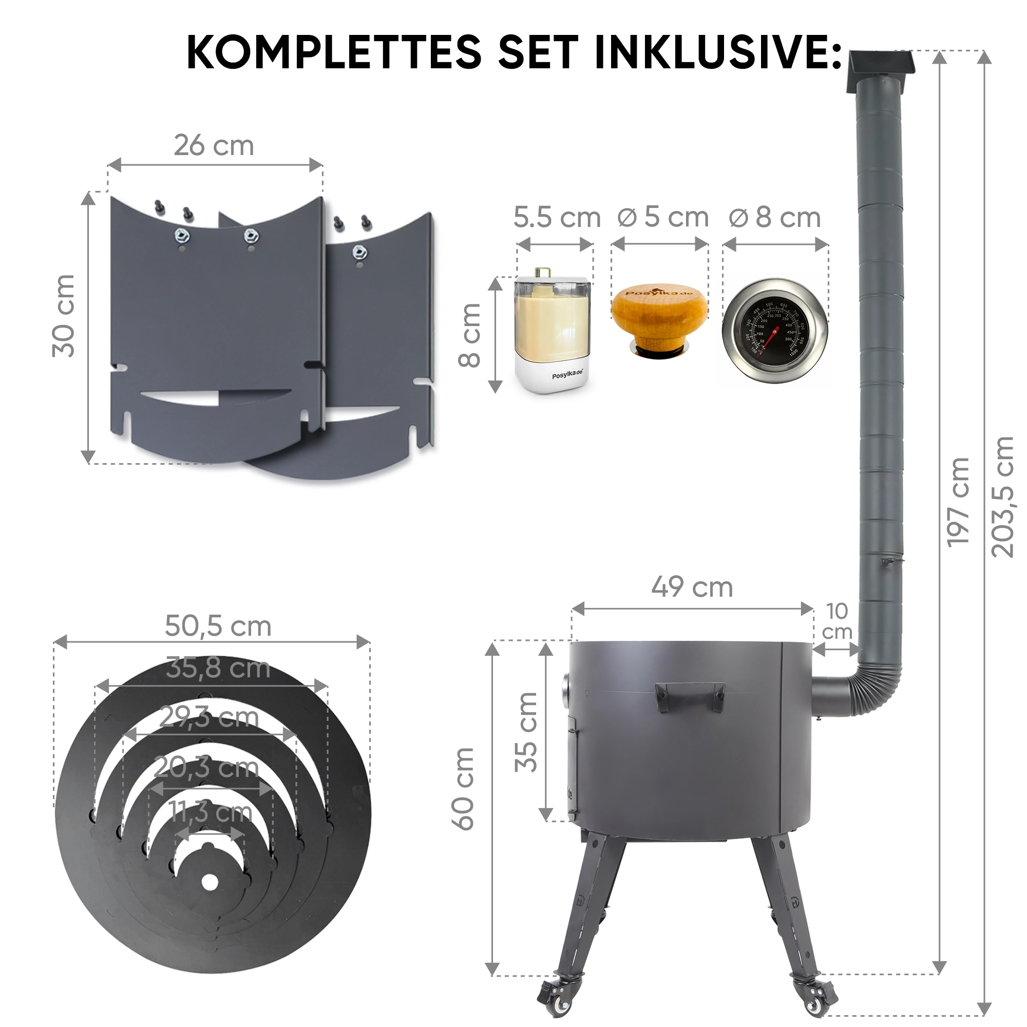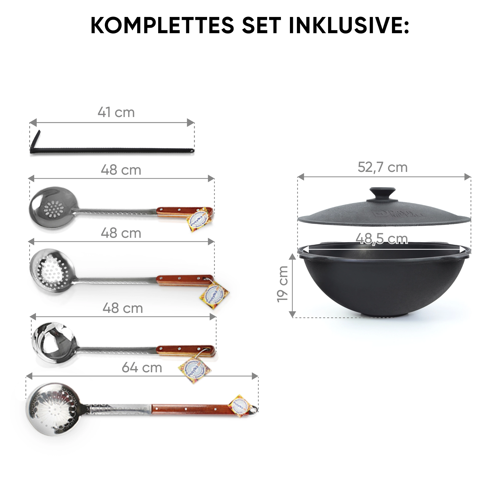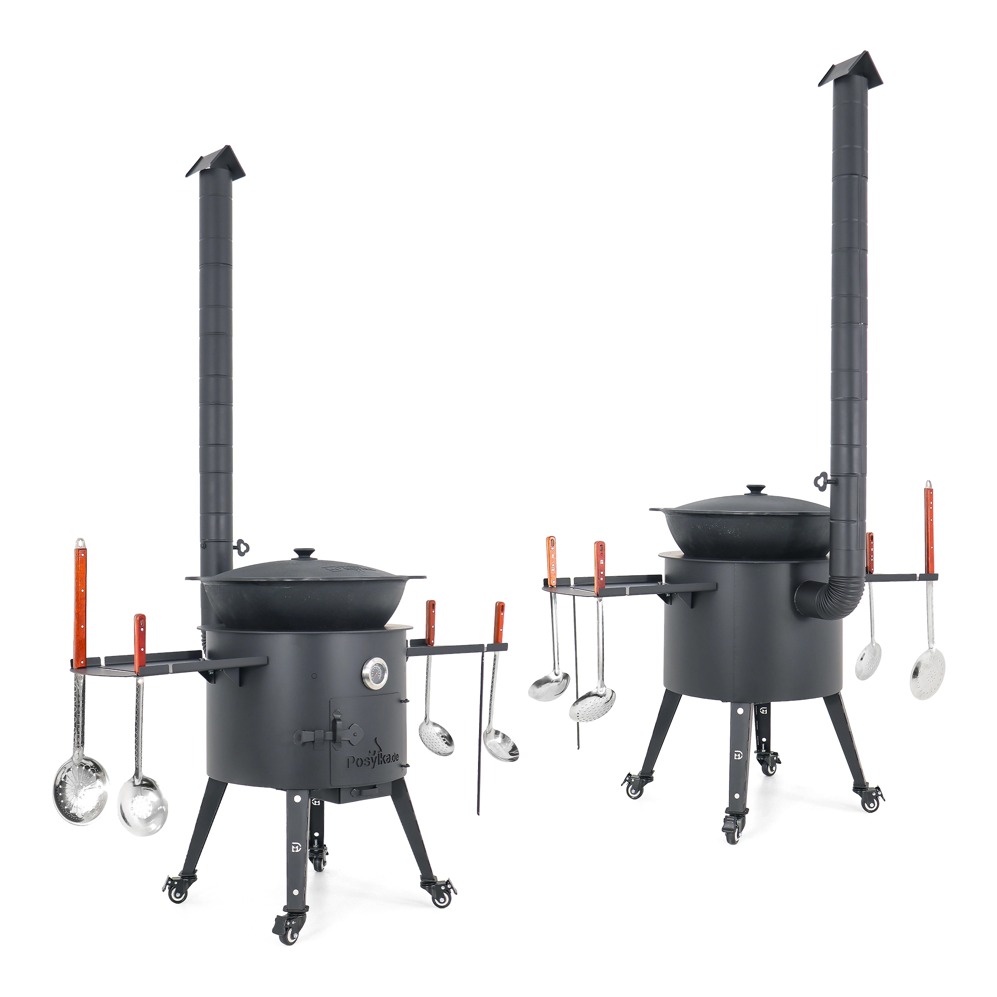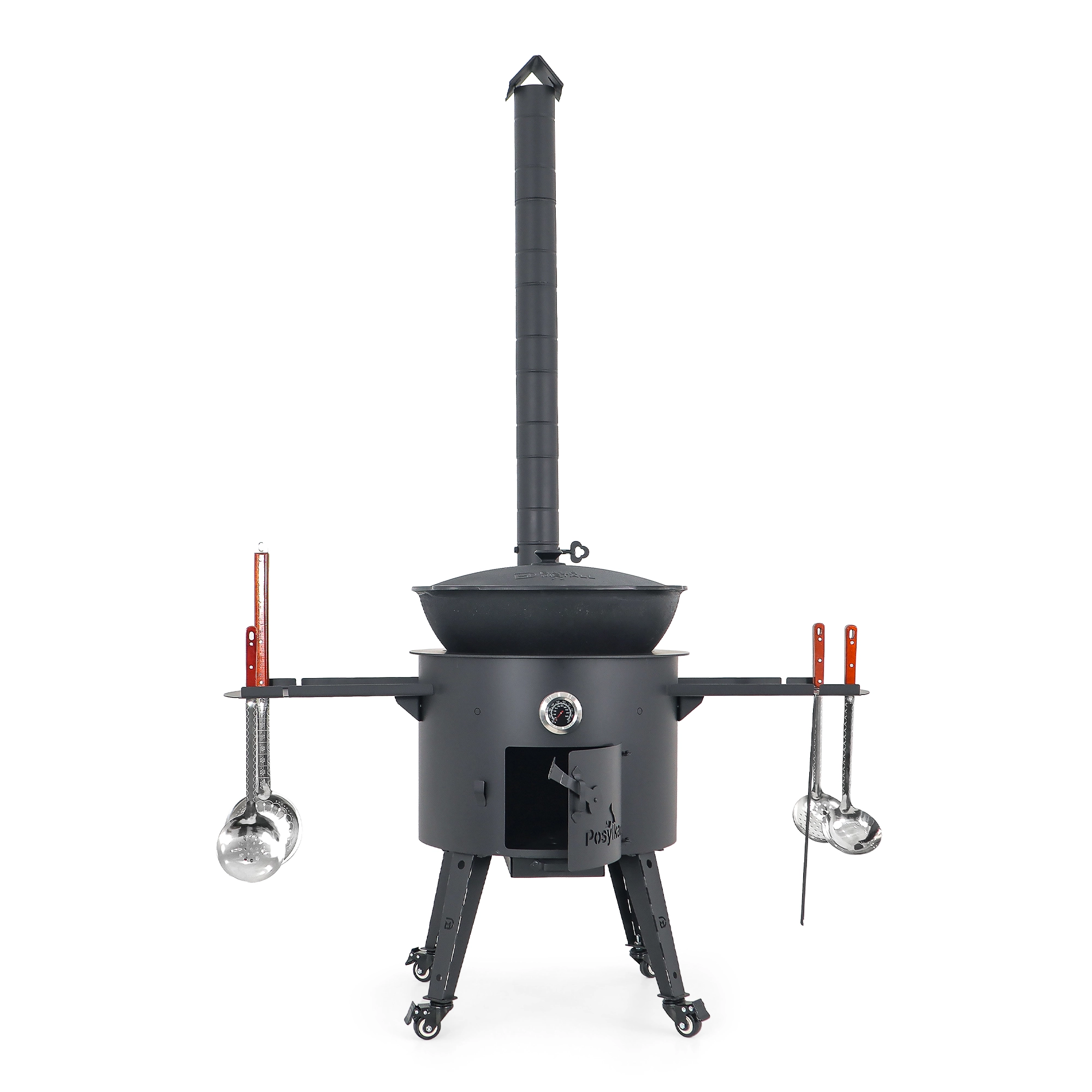Учаг печь Ø 49 см + чугунный казан 22 л, плоское дно + кухонные принадлежности, узбекский чугунный казан для гриля и плова