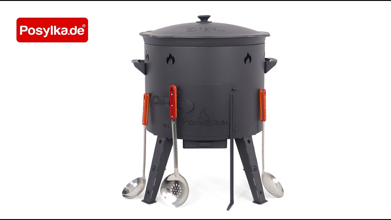 Учаг печь Ø 49 см + чугунный казан 22 л, плоское дно + кухонные принадлежности, узбекский чугунный казан для гриля и плова