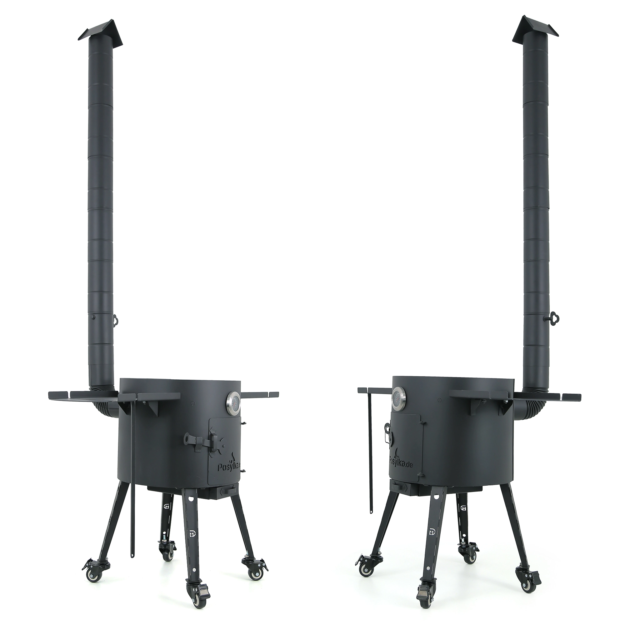 Набор - Печь КазаноFF с удлинённой трубой и аксессуарами идеален для казана объемом 12 литров и диаметром 40 см. Изготовлен из прочной стали толщиной 2мм. В комплект к печи входят 2 съемных столика, удлинитель трубы, 4 колеса для транспортировки, жаропрочный термометр, автоматический диспенсер для зубочисток.