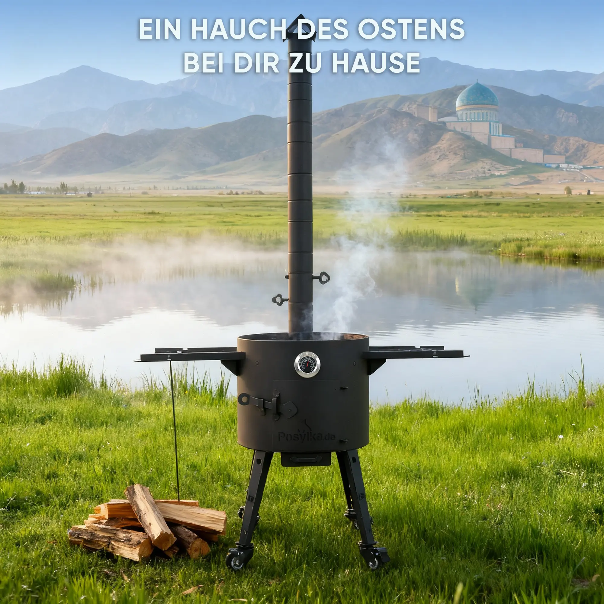 Если вы ищете небольшой, маневренный и удобный учаг для готовки на открытом огне, то этот набор - лучший выбор. Он подойдет для небольших семей и вылазок на природу. Наслаждайтесь приготовление плова и других блюд на костре, не забывайте также приобрести: