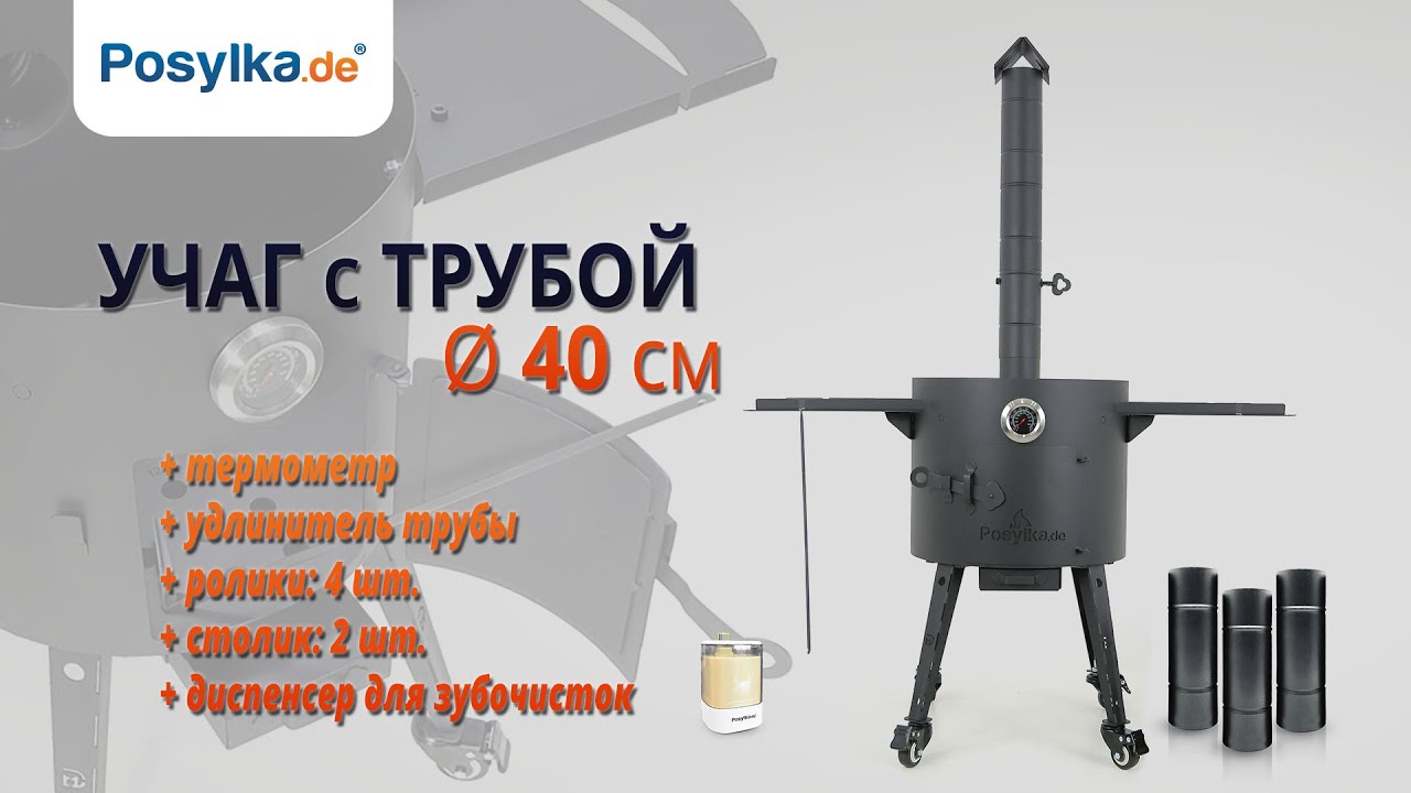 Учаг с трубой Ø 40 см + удлинитель трубы + термометр + ролики: 4 шт. + столик: 2 шт. + диспенсер для зубочисток