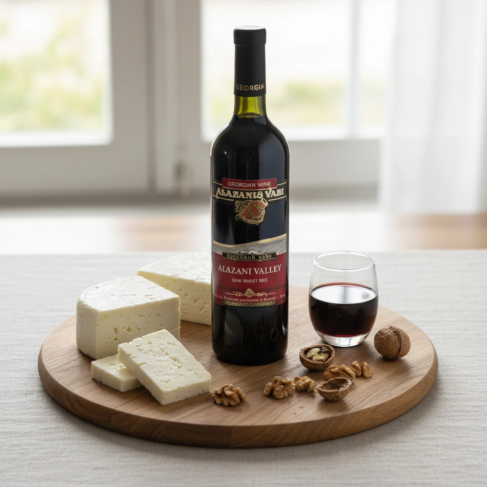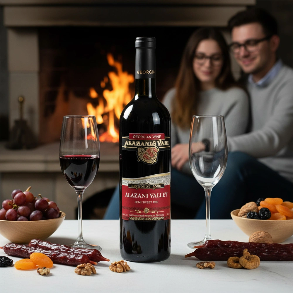 Вино грузинское красное полусладкое - Алазанская долина, 0,75 л